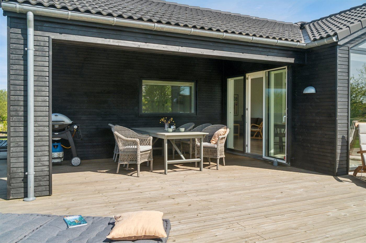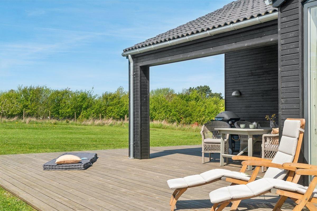 De vakantiewoning is gelegen op een 1164 m² groot aangelegde tuin. De grond is omheind. Afstand tot de zee 300 m. Dichtstbijzijnde winkel 2200 m. Er is een golfbaan op een afstand van 6000 m. Bij de vakantiewoning hoort 140 m² terras. Daarnaast is er een 19 m² groot overdekt terras. Buitendouche. Barbecue. Het huis heeft een stopcontact voor het opladen van een elektrische auto. CEE-stekker. Met 11 kW-laadvermogen. Parkeerplaats bij het huis.