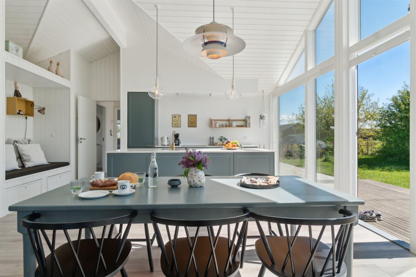 De keuken is uitgerust met koelkast Er is 4 inductiekookplaten, heteluchtoven en vaatwasser.