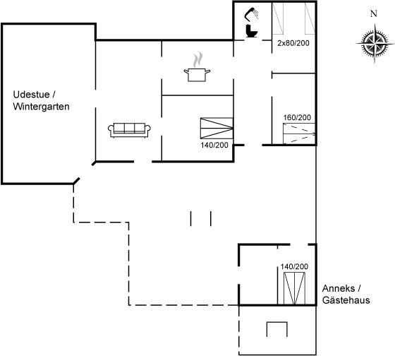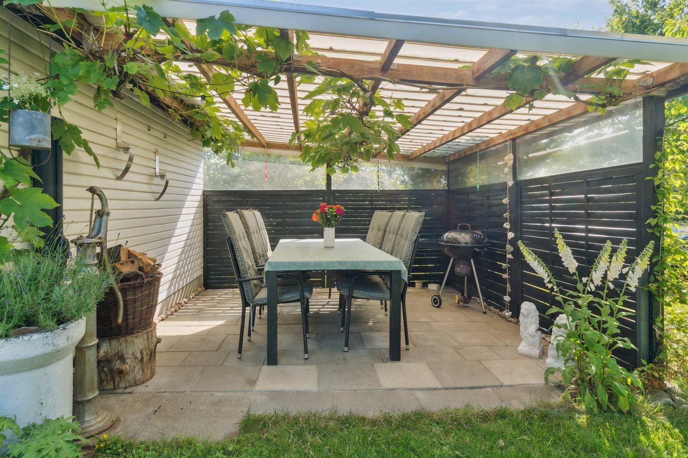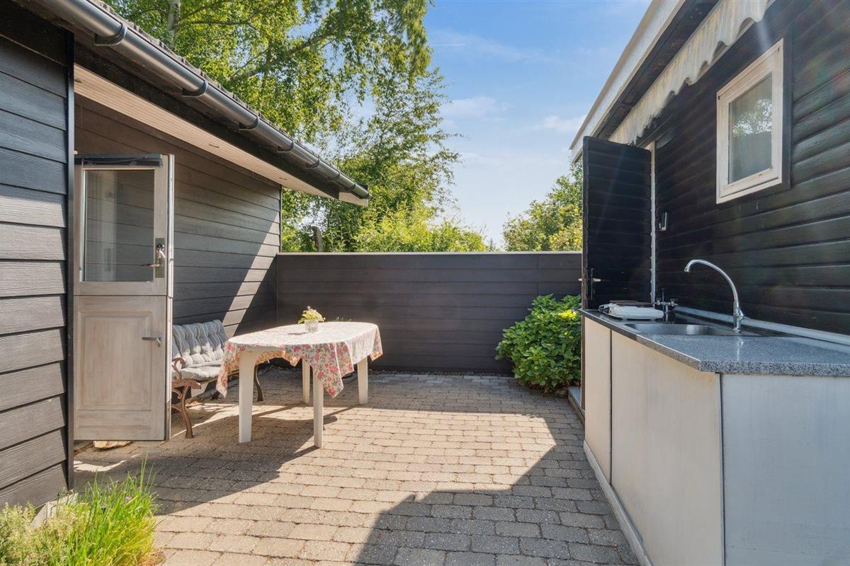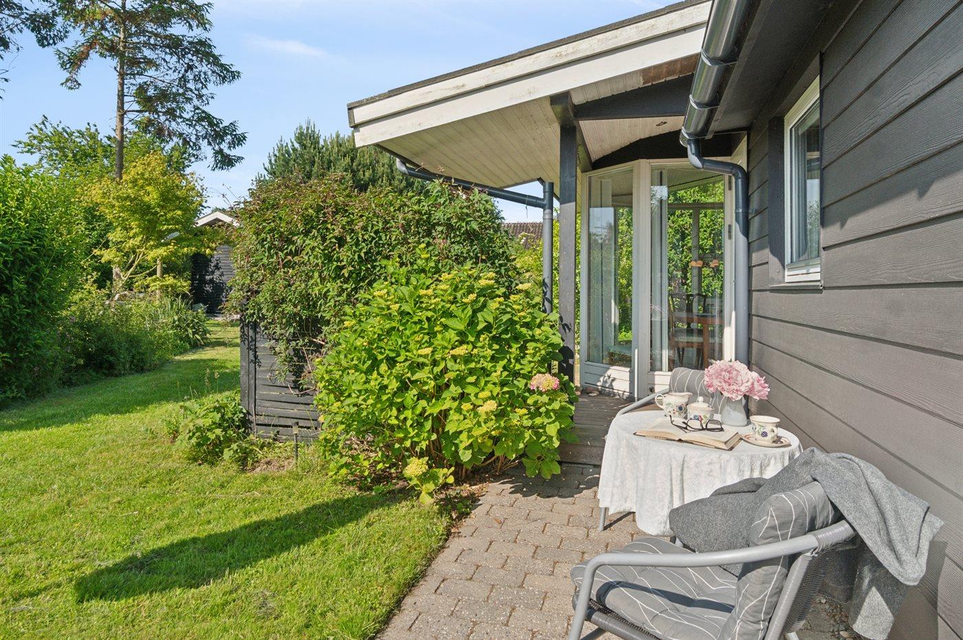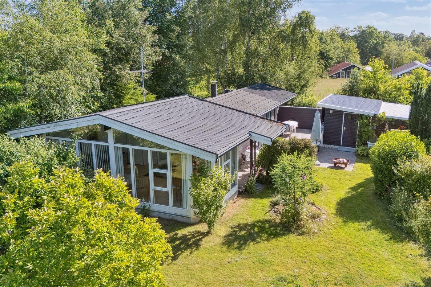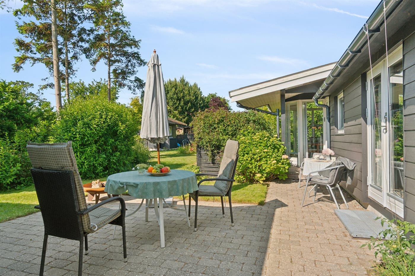 De vakantiewoning is gelegen op een 892 m² groot aangelegde tuin. Afstand tot de zee 350 m. Dichtstbijzijnde winkel 1200 m. Er is een golfbaan op een afstand van 7300 m. Bij de vakantiewoning hoort 35 m² terras. Daarnaast is er een 12 m² groot overdekt terras. Afstand tot speelplaats 950 m.Vuurplaats. Barbecue. Parkeerplaats bij het huis.