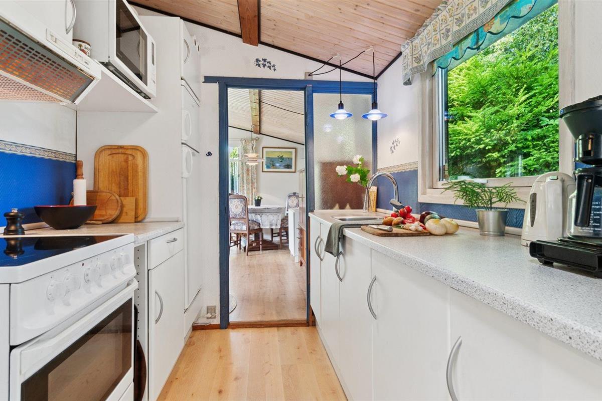 De keuken is uitgerust met koelkast Er zijn 4 keramische kookplaten, heteluchtoven, magnetron en vaatwasser.