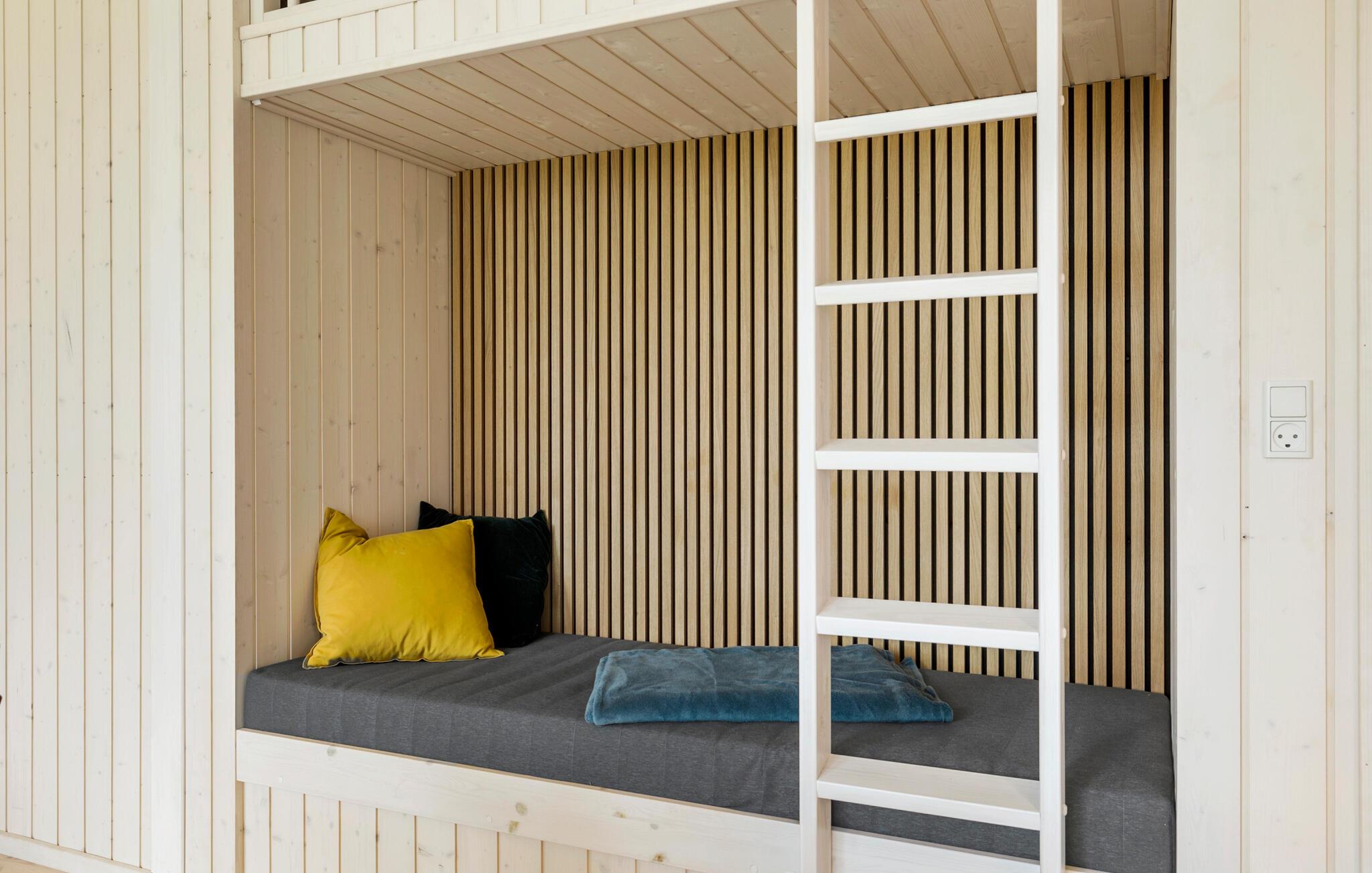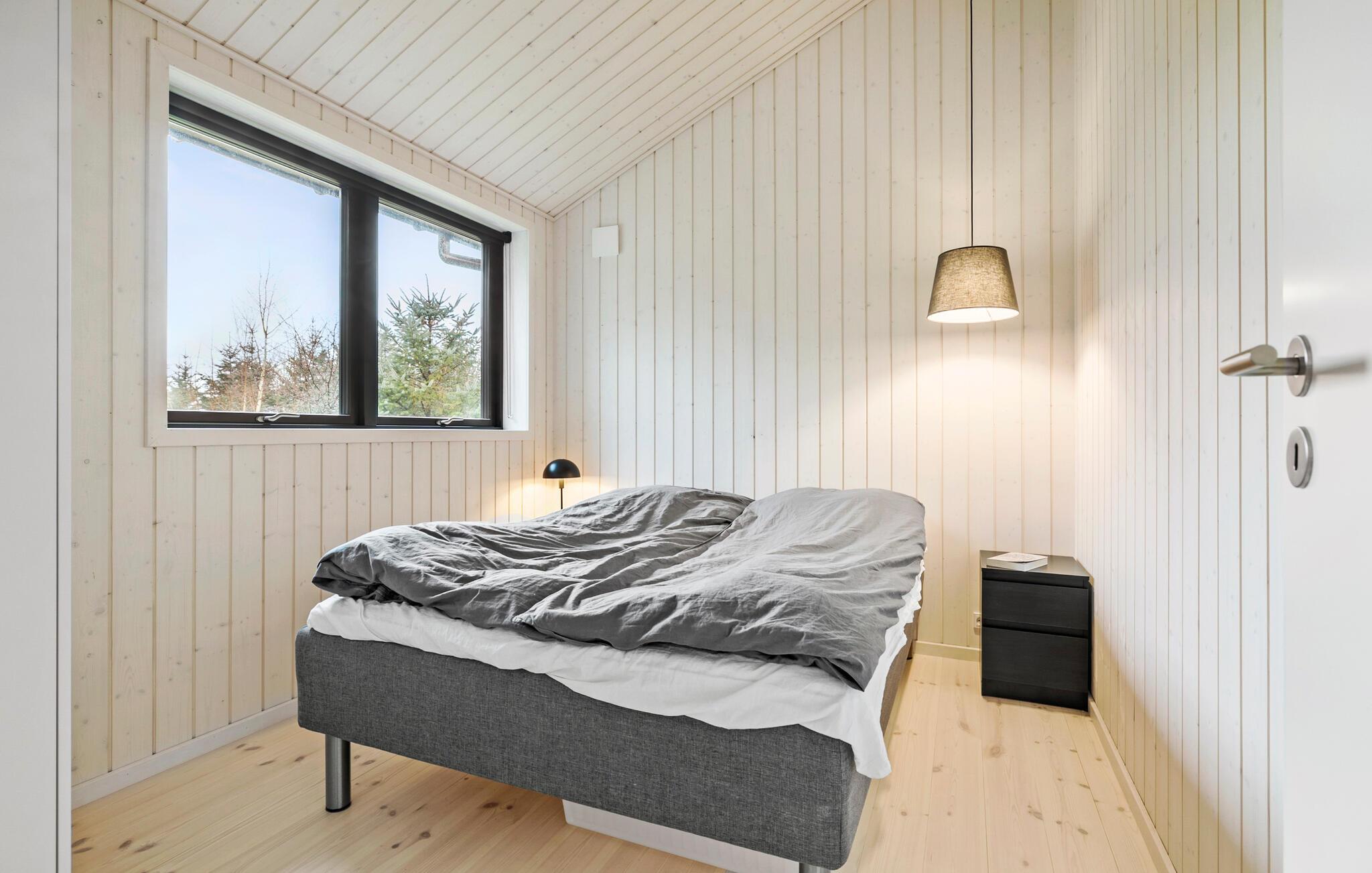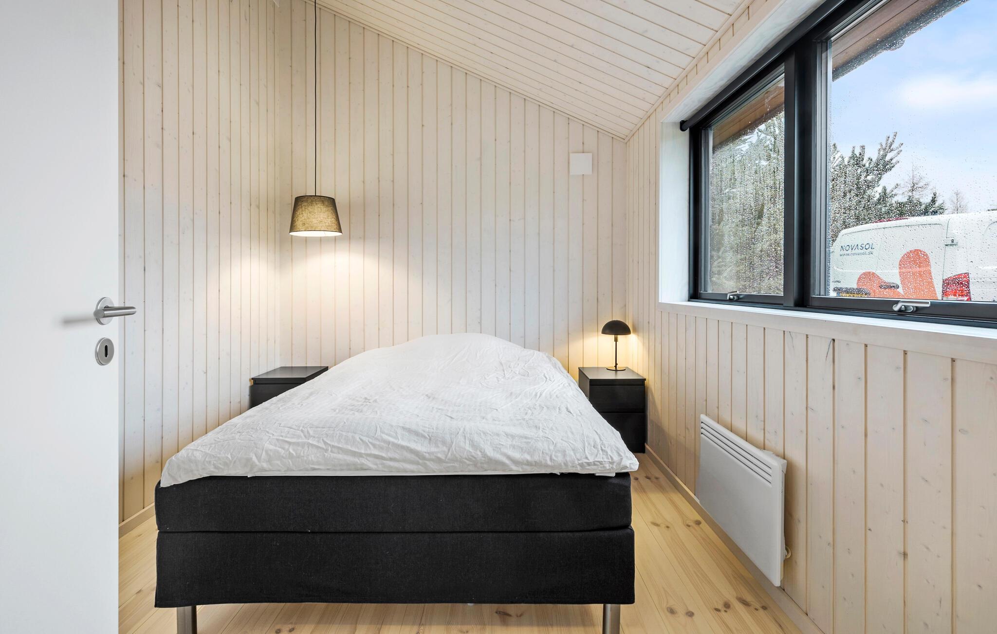 Reis naar het eiland Bornholm en breng een ontspannen vakantie door in dit prachtige vakantiehuis, dat aan de binnenkant met hout is bekleed. De grote ramen van vloer tot plafond zorgen voor veel daglicht in de kamers. Kom samen voor gezellige spelletjes of filmavonden in de woonkamer of kijk hoe je kinderen spelen en lezen in de twee slaapkamers.
