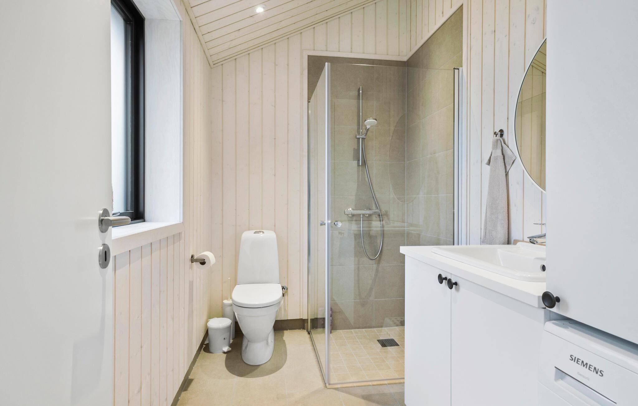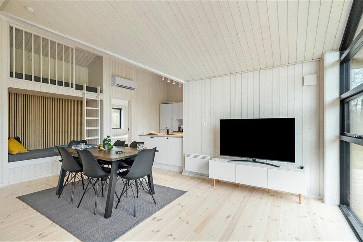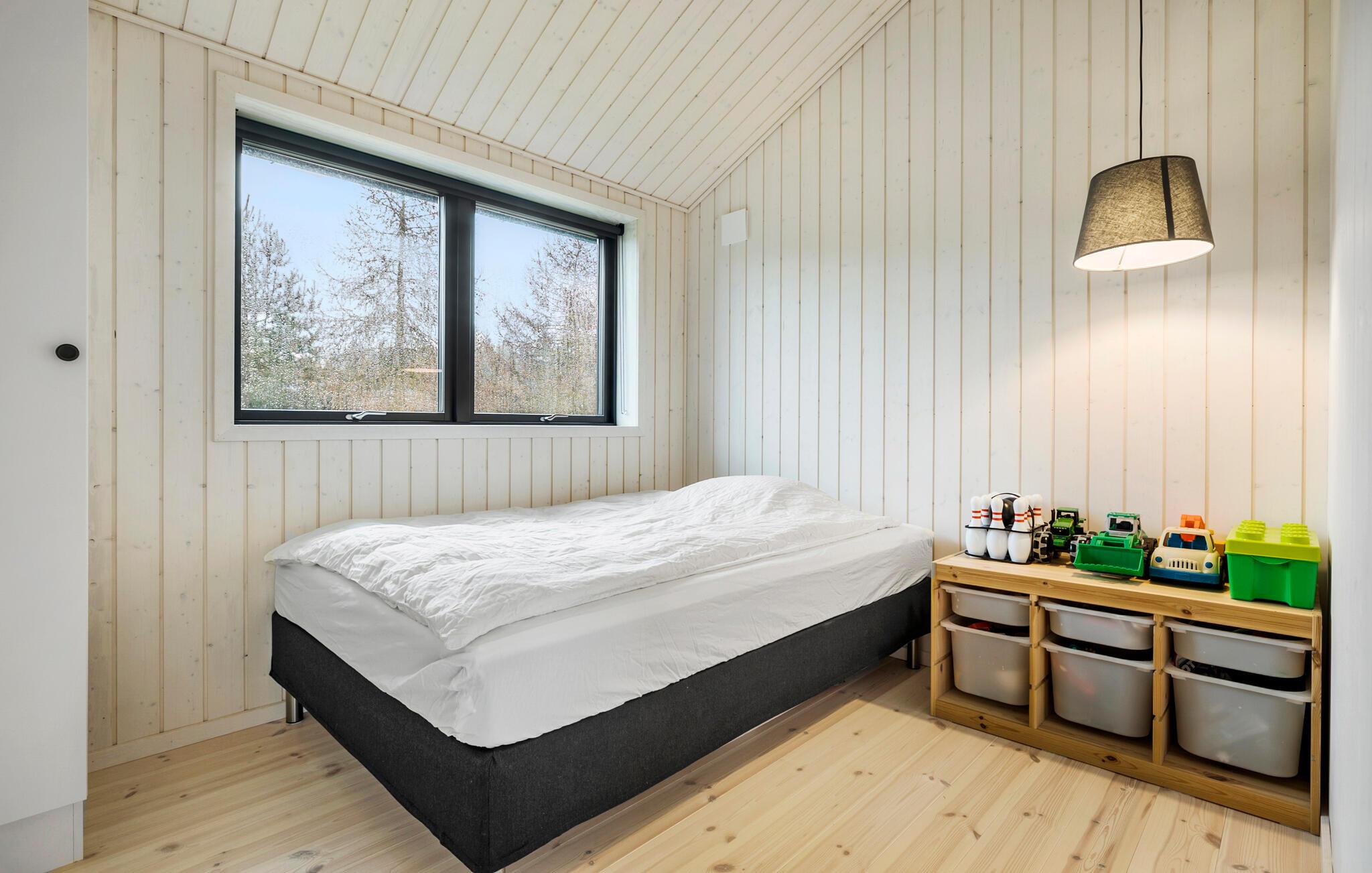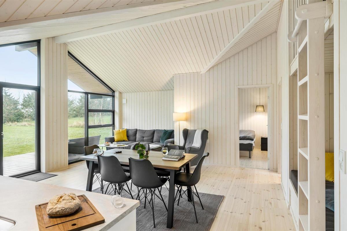 Reis naar het eiland Bornholm en breng een ontspannen vakantie door in dit prachtige vakantiehuis, dat aan de binnenkant met hout is bekleed. De grote ramen van vloer tot plafond zorgen voor veel daglicht in de kamers. Kom samen voor gezellige spelletjes of filmavonden in de woonkamer of kijk hoe je kinderen spelen en lezen in de twee slaapkamers.