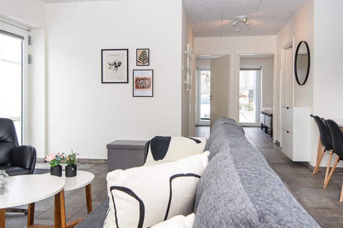 Ferienhaus bei Hee in einem schönen Ferienhausgebiet mit Blick auf einen idyllischen Angelsee. Die 71 m2 große Wohnfläche bietet zwei Zimmer mit Doppelbett und ein drittes Zimmer mit Etagenbett. Das frei stehende Haus ist ganzjährig isoliert, hat im ganzen Haus angenehme Fußbodenheizung und zudem eine klimafreundliche Wärmepumpe für kühlere Tage. Es gibt folgende deutsche Fernsehsender: RTL, NDR, ZDF, ARD. Alles über You See, das auf dem Smart-TV läuft. Am Haus zudem Ladegerät für Elektroautos (Typ 2).