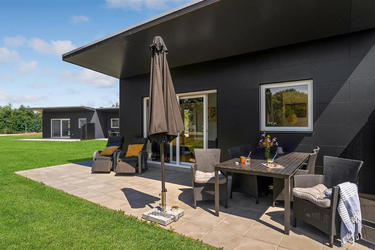 Stap direct het terras op en geniet van het weidse uitzicht over de groene weide en het meer. Maak het jezelf gemakkelijk op het tuinmeubilair, barbecue op warme zomeravonden en sluit de dag af met een drankje in de zon. Er zijn drie terrassen rondom het huis. Kies je favoriete plekje afhankelijk van het moment van de dag.