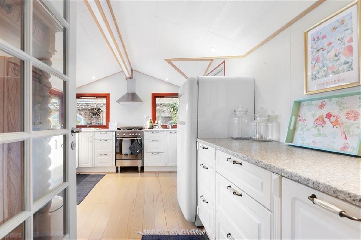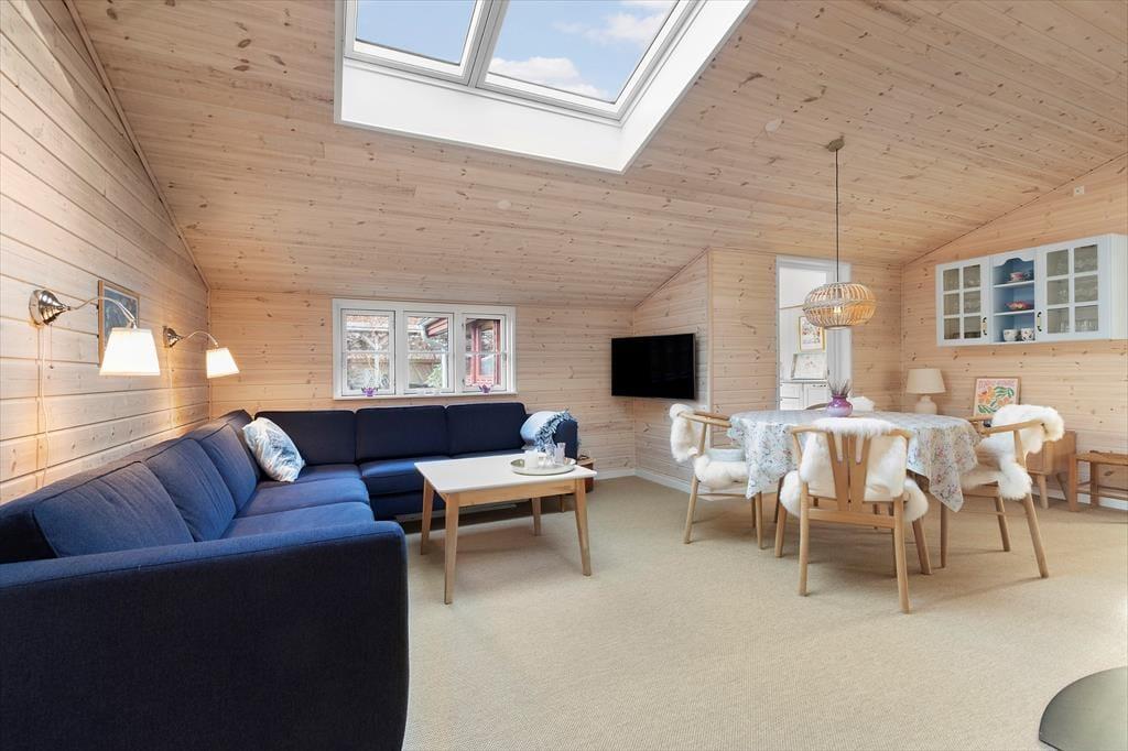 Vakantiehuis in Fjellerup strand og by, Oost-Jutland, met plaats voor 5 volwassenen. De woning heeft een gezellig interieur met o.a. een houtkachel, en beschikt daarnaast over een wasmachine en een vaatwasser.