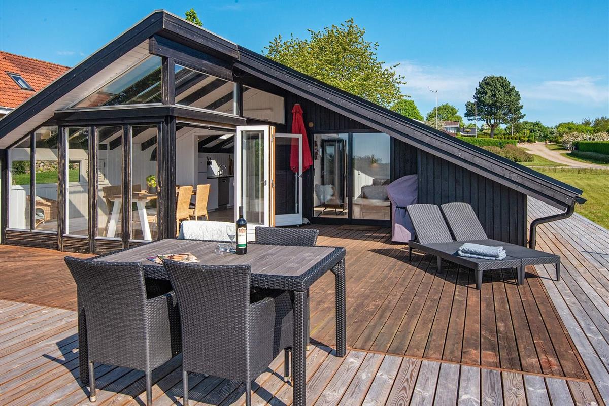 Einzigartig ist die großzügige Terrasse des Hauses: Sie bietet einen großen Bereich nach Osten für ein Frühstück im Freien und einen Bereich nach Süden und Westen für weitere Stunden im Freien bis zum Grillen, wofür es einen überdachten Bereich gibt. Die Terrasse ist mit vielen guten Gartenmöbeln ausgestattet, darunter zwei Sitzgruppen sowie mehrere Sonnenliegen und Liegestühle – lehnen Sie sich zurück und genießen Sie Ihren Urlaub!