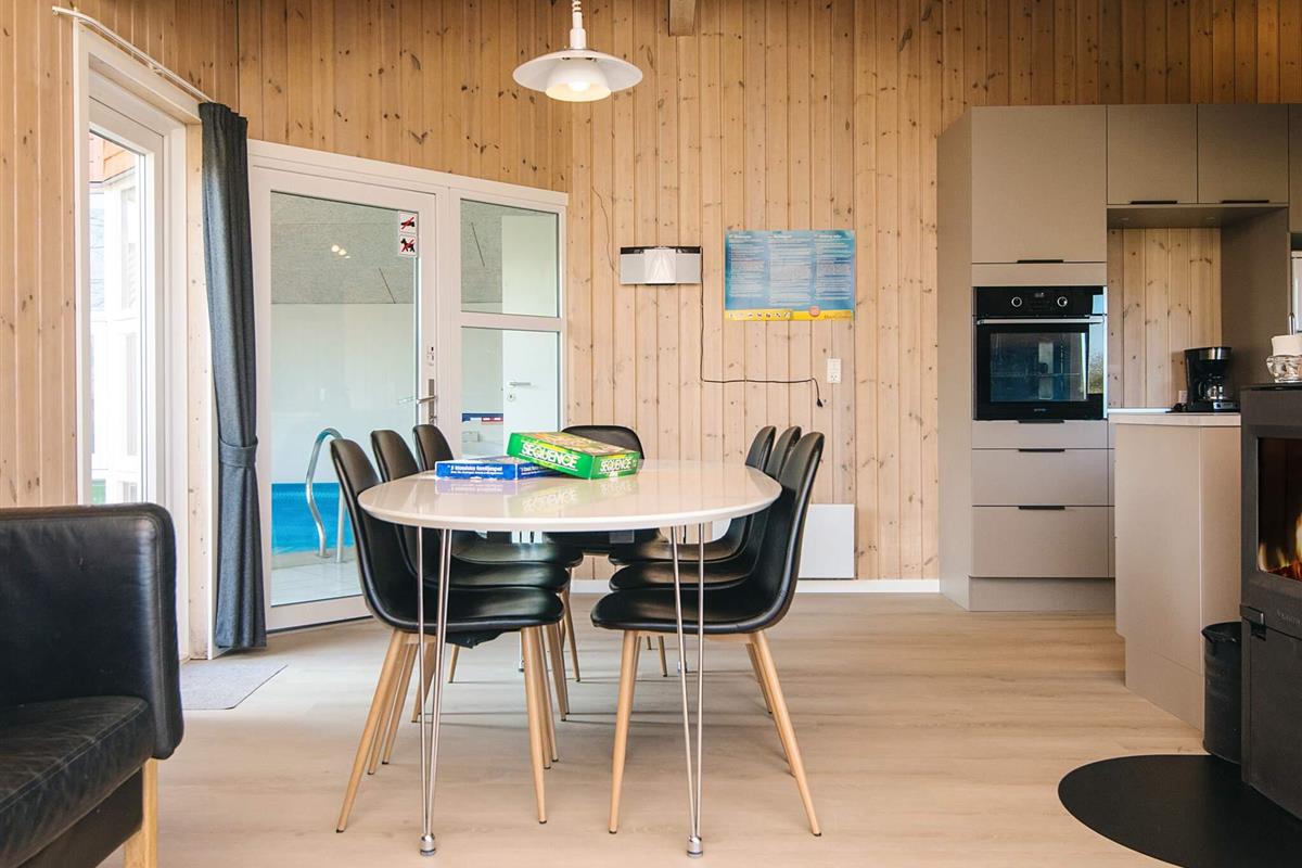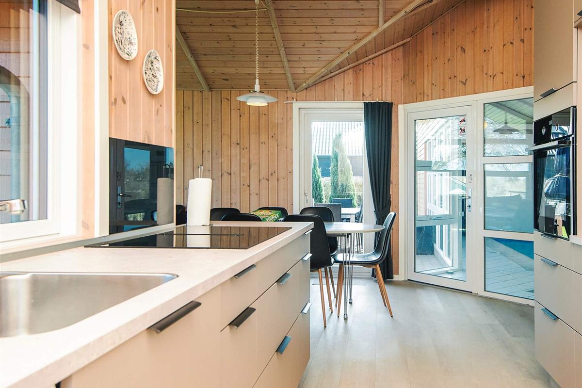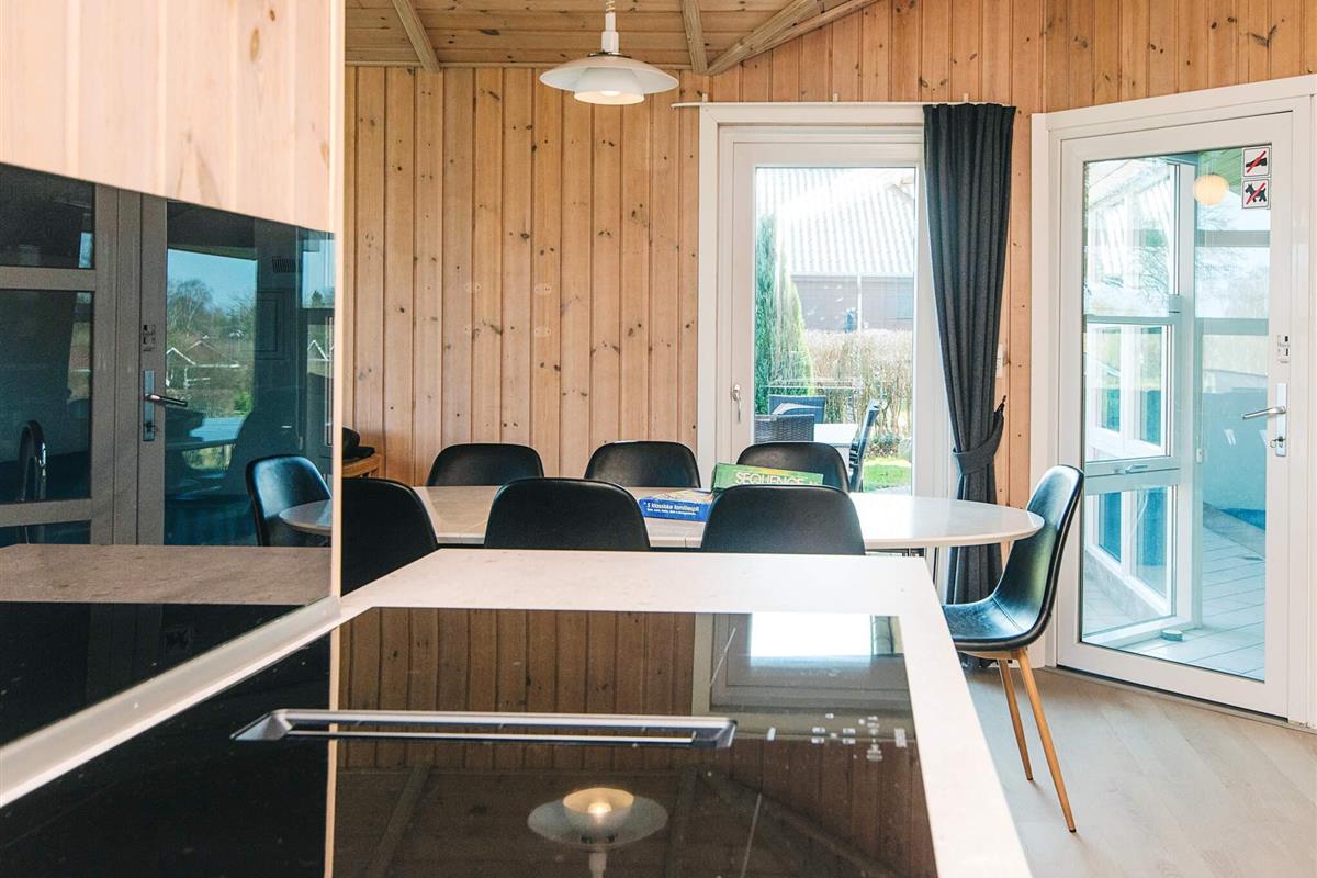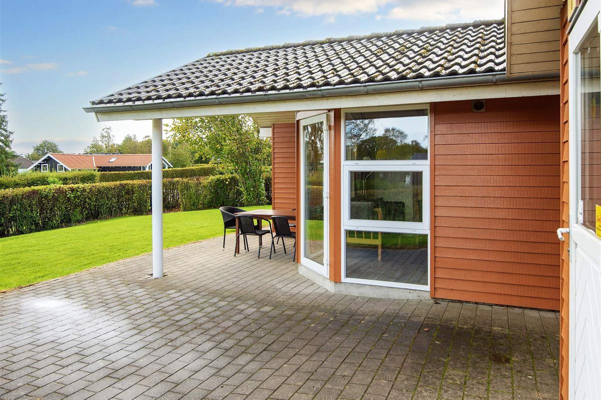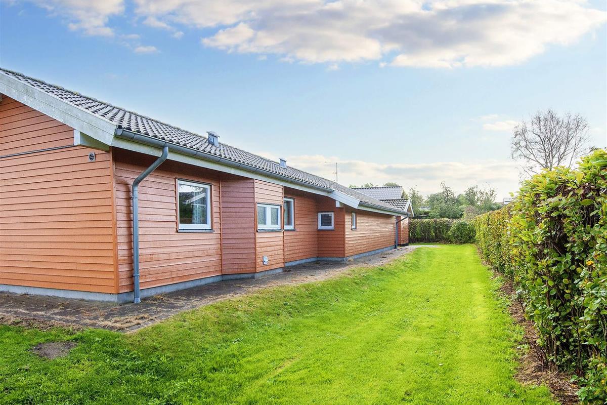 Dieses Ferienhaus mit Pool, Whirlpool und Sauna für Wellness und Erholung steht am Ende einer kleinen Sackgasse, auf einem gut abgeschirmten Rasengrundstück im Ferienhausgebiet von Hejlsminde.