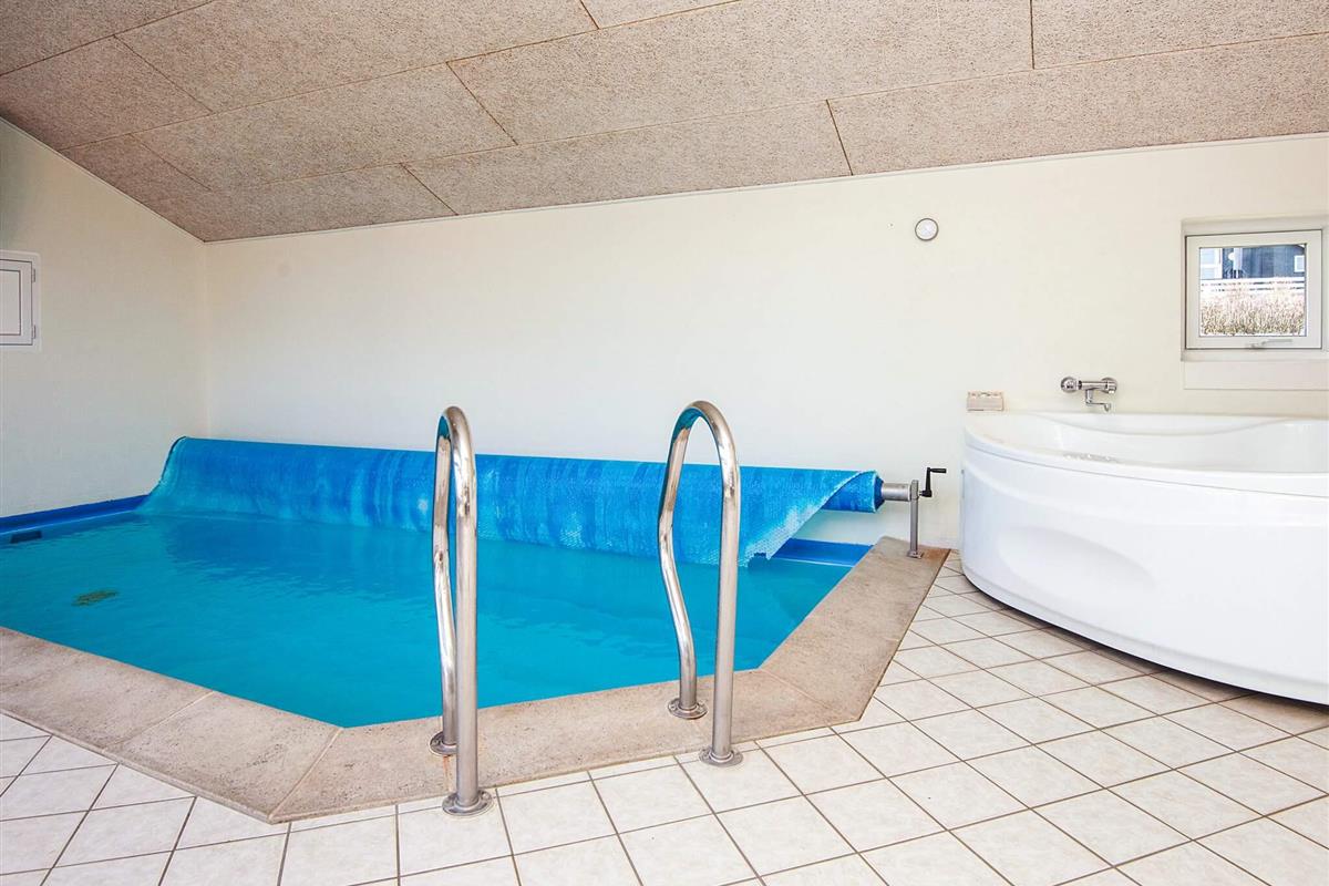 Durch die große Fensterfront im Poolbereich hat man sowohl vom Pool als auch vom Whirlpool schönen Ausblick nach draußen. Der Whirlpool wird mit Wasser aus dem Pool befüllt. Alternativ kann dieser aber auch mit chlorfreiem Wasser direkt aus dem Hahn befüllt werden.