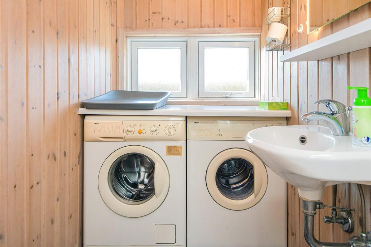 Außerdem extra Toilette mit Waschmaschine und Wäschetrockner sowie drei Schlafzimmer und ein Alkoven im Haus.