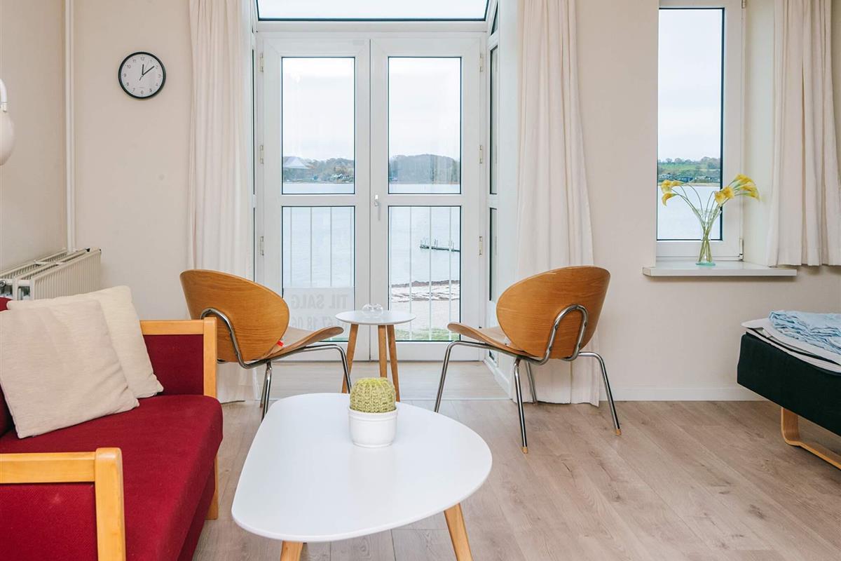 Hübsche kleine Ferienwohnung in bester Lage im traditionsreichen Hejlsminde Badehotel – im 1. Stock mit schönem Ost-Erker/Balkon direkt am Wasser. Hier können Sie sitzen und den Sonnenaufgang beobachten, den Blick auf den kinderfreundlichen Sandstrand und den Kleinen Belt genießen und das Segelleben auf den Gewässern Richtung Fünen und Brandsø verfolgen.