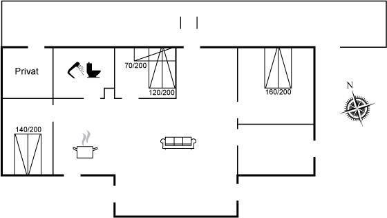 De vakantiewoning is gelegen op een 650 m² groot aangelegde tuin. Afstand tot de zee 200 m. Afstand tot meer 75 m. Dichtstbijzijnde winkel 500 m. Er is een golfbaan op een afstand van 10000 m. Bij de vakantiewoning hoort terras. Daarnaast is er een overdekt terras. Shelter. Barbecue. Parkeerplaats bij het huis.