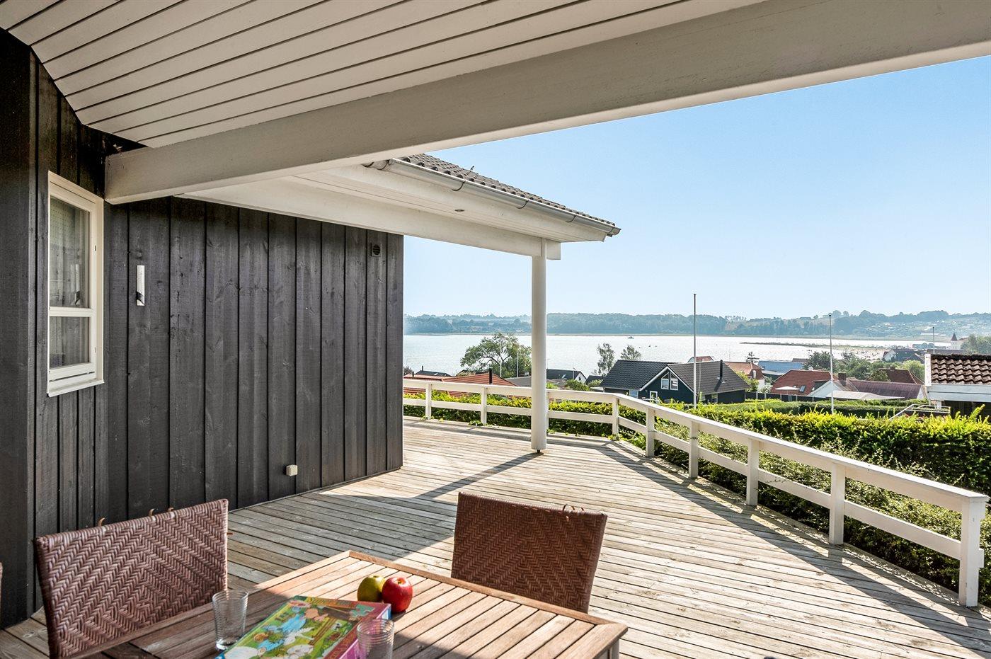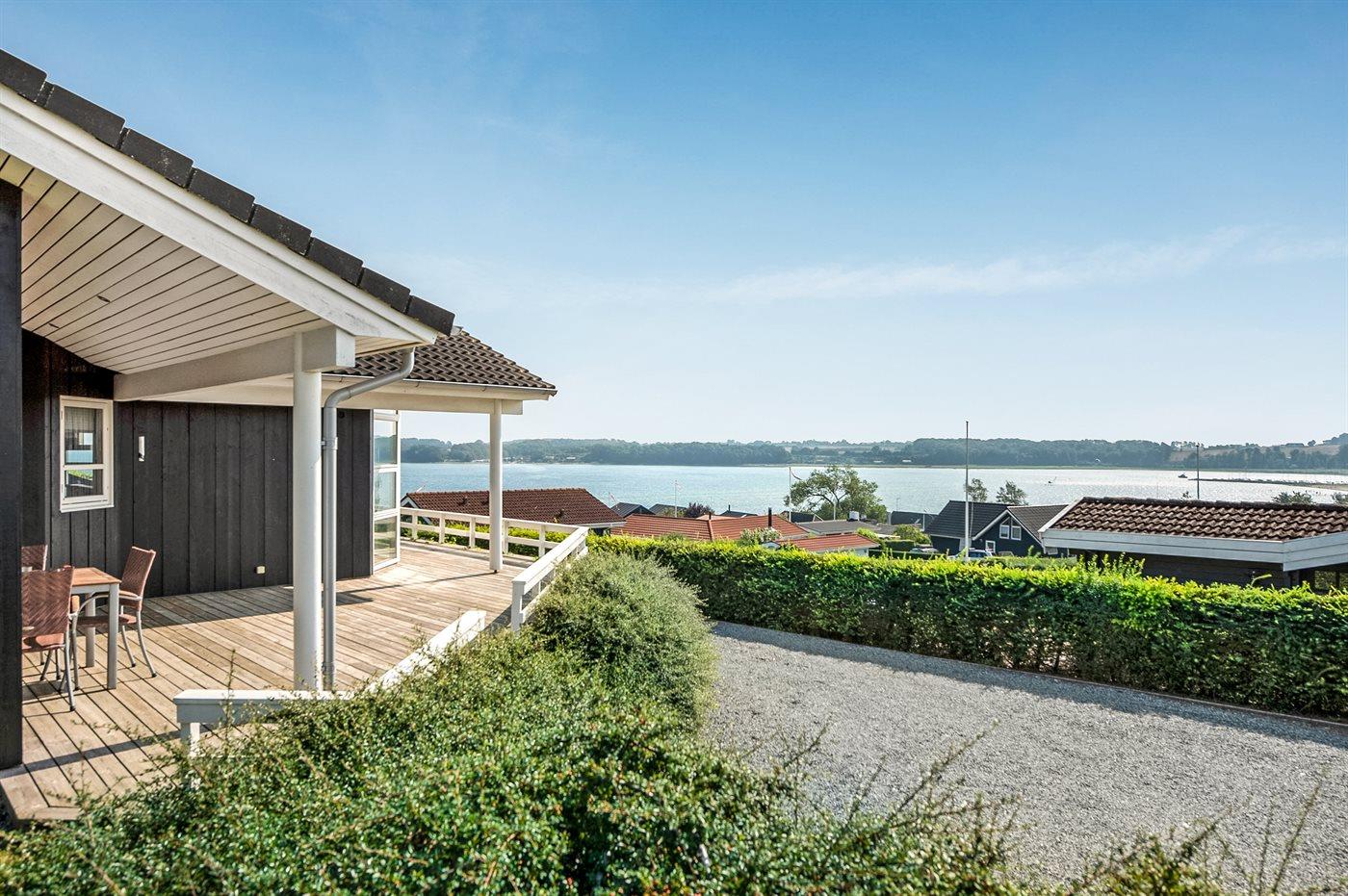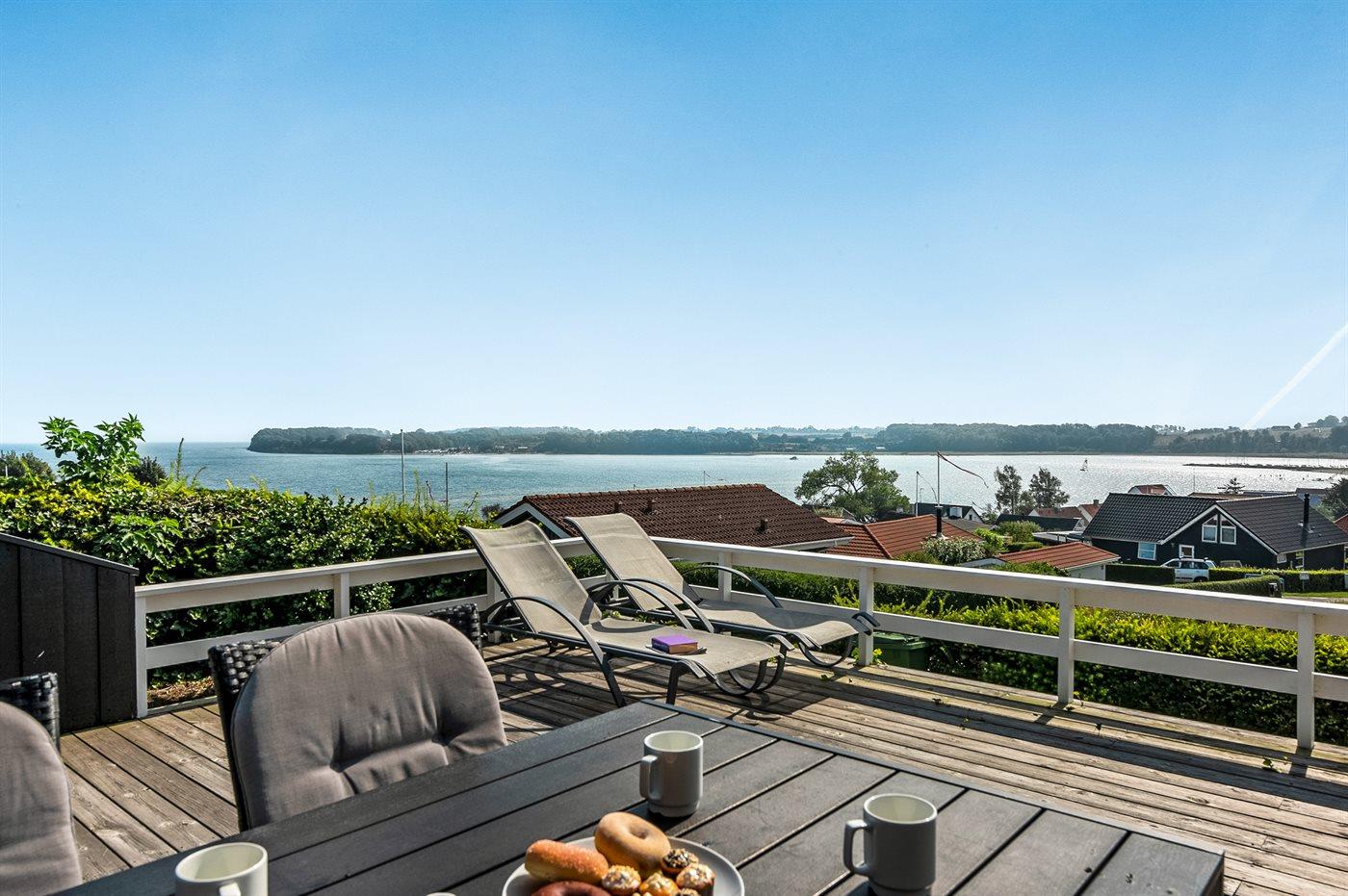 Comfortabel vakantiehuis in Hejlsminde met uitzicht op zee, bubbelbad en grote tuin, vlakbij strand en winkels.