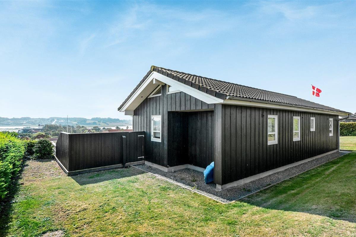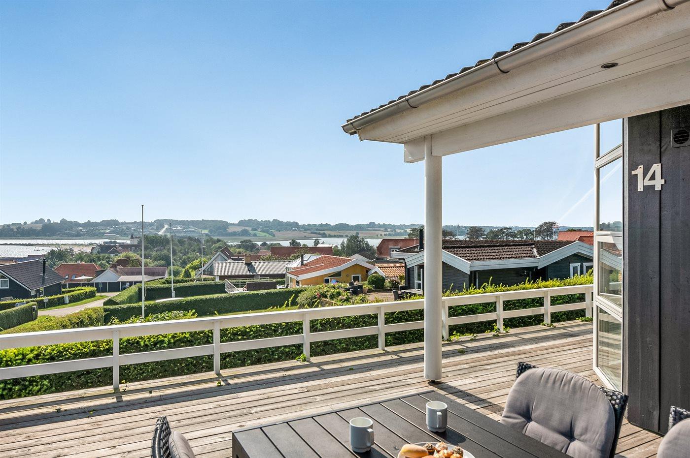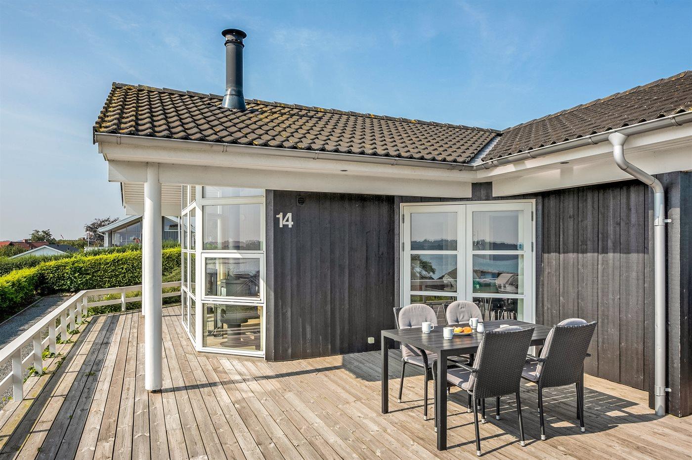 Comfortabel vakantiehuis in Hejlsminde met uitzicht op zee, bubbelbad en grote tuin, vlakbij strand en winkels.