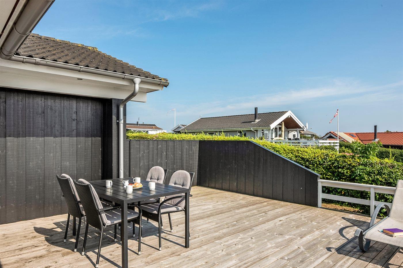 De vakantiewoning is gelegen op een 610 m² groot aangelegde tuin. Afstand tot de zee 150 m. Dichtstbijzijnde winkel 500 m. Bij de vakantiewoning hoort 65 m² terras. Daarnaast is er een 22 m² groot overdekt terras. Schommel. Zandbak. Parkeerplaats bij het huis.