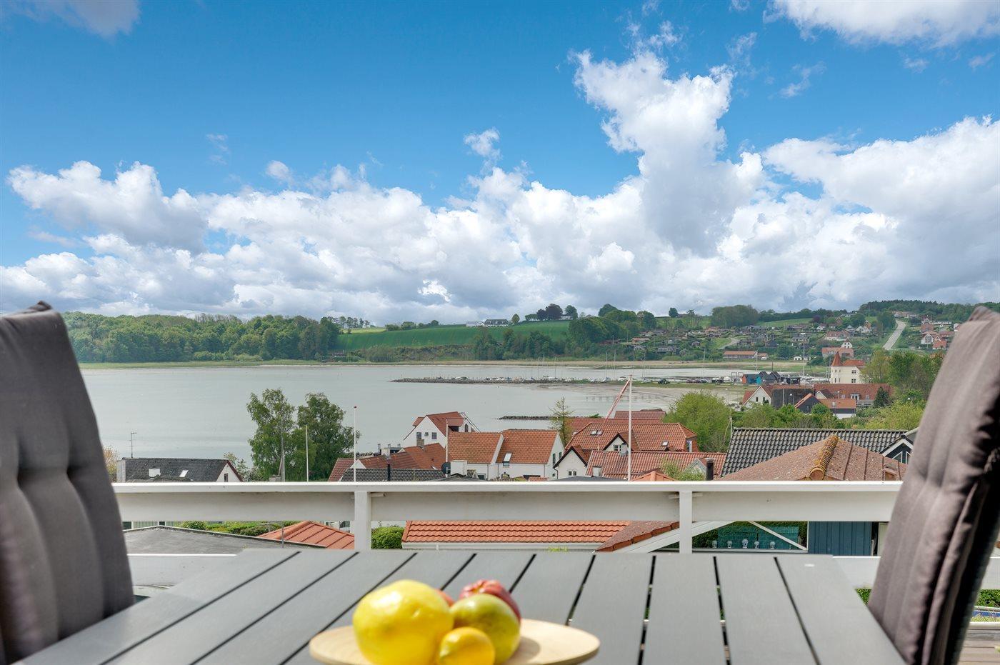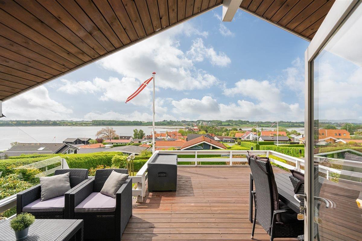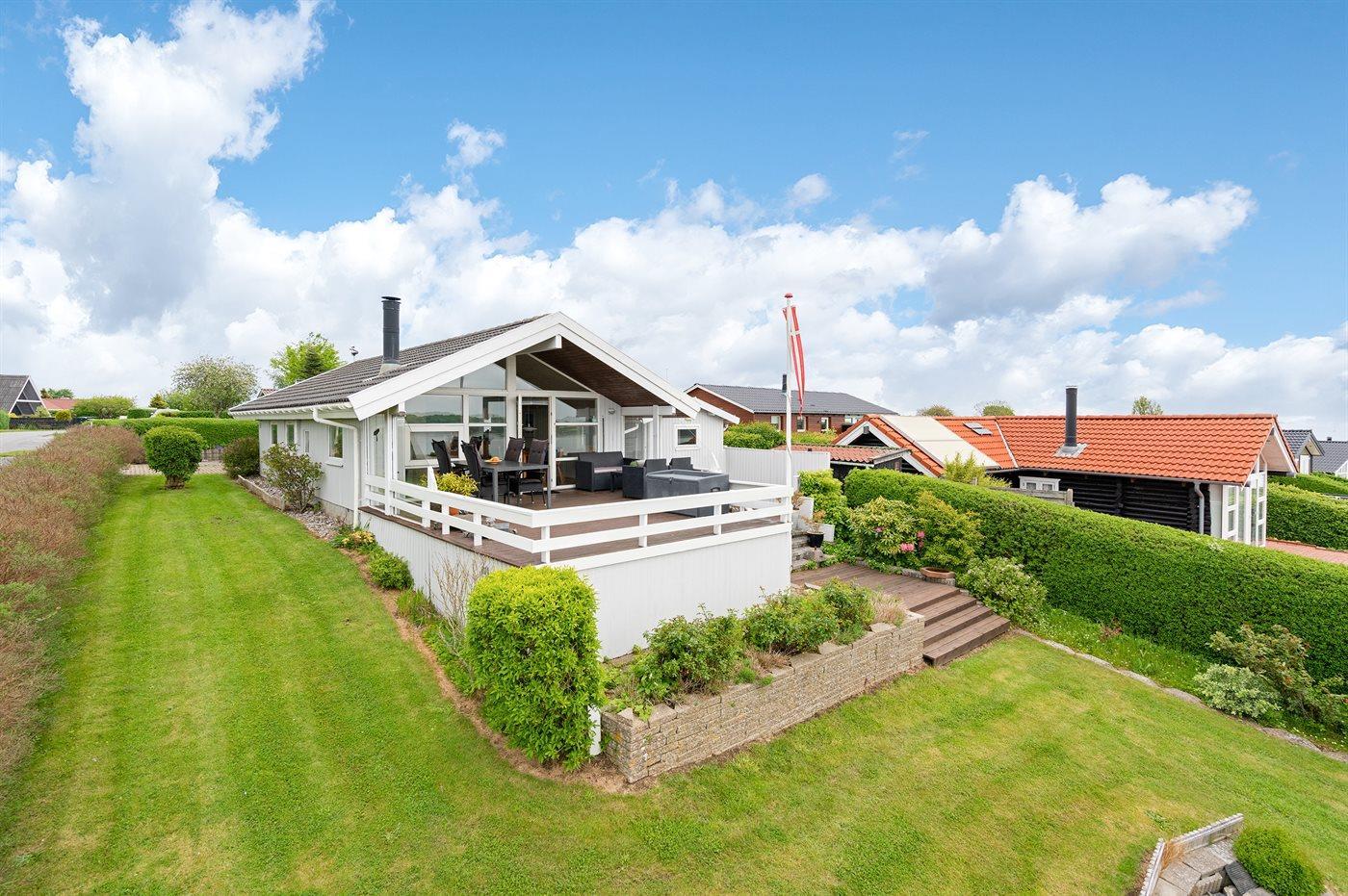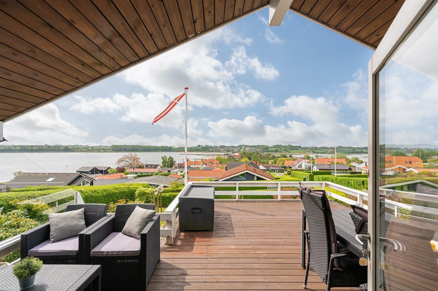 Comfortabel vakantiehuis in Hejls met zeezicht, houtkachel en terrassen, dicht bij strand en natuur.