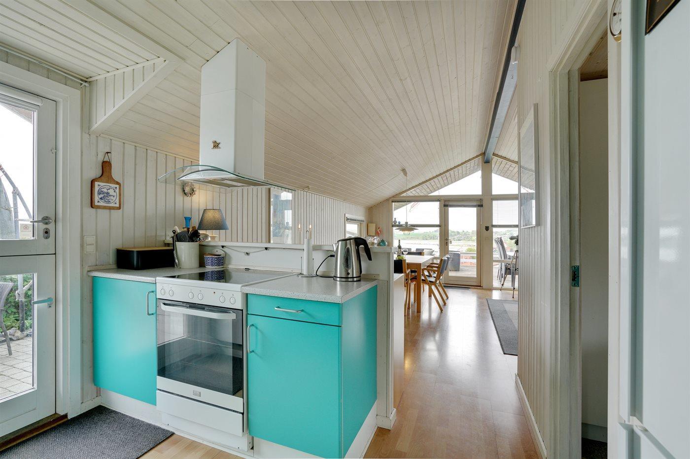 De keuken is uitgerust met koelkast Er is 4 inductiekookplaten, heteluchtoven, magnetron en vaatwasser.