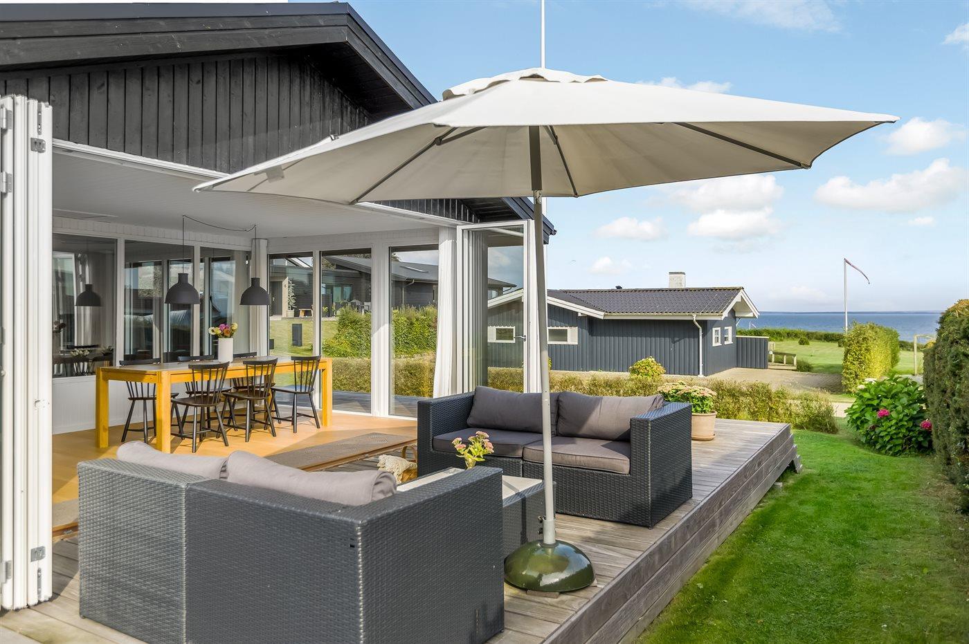 Volledig gerenoveerd vakantiehuis in Hejlsminde met uitzicht op zee, vlakbij het strand en veel buitenfaciliteiten.