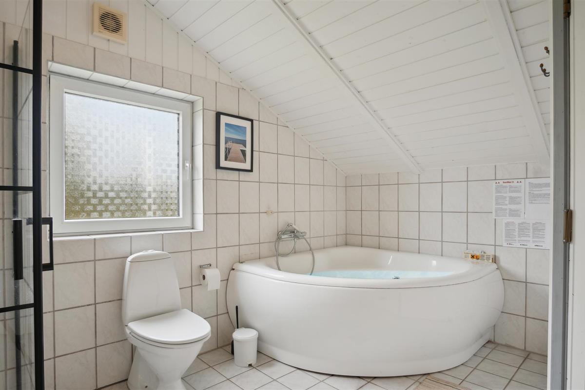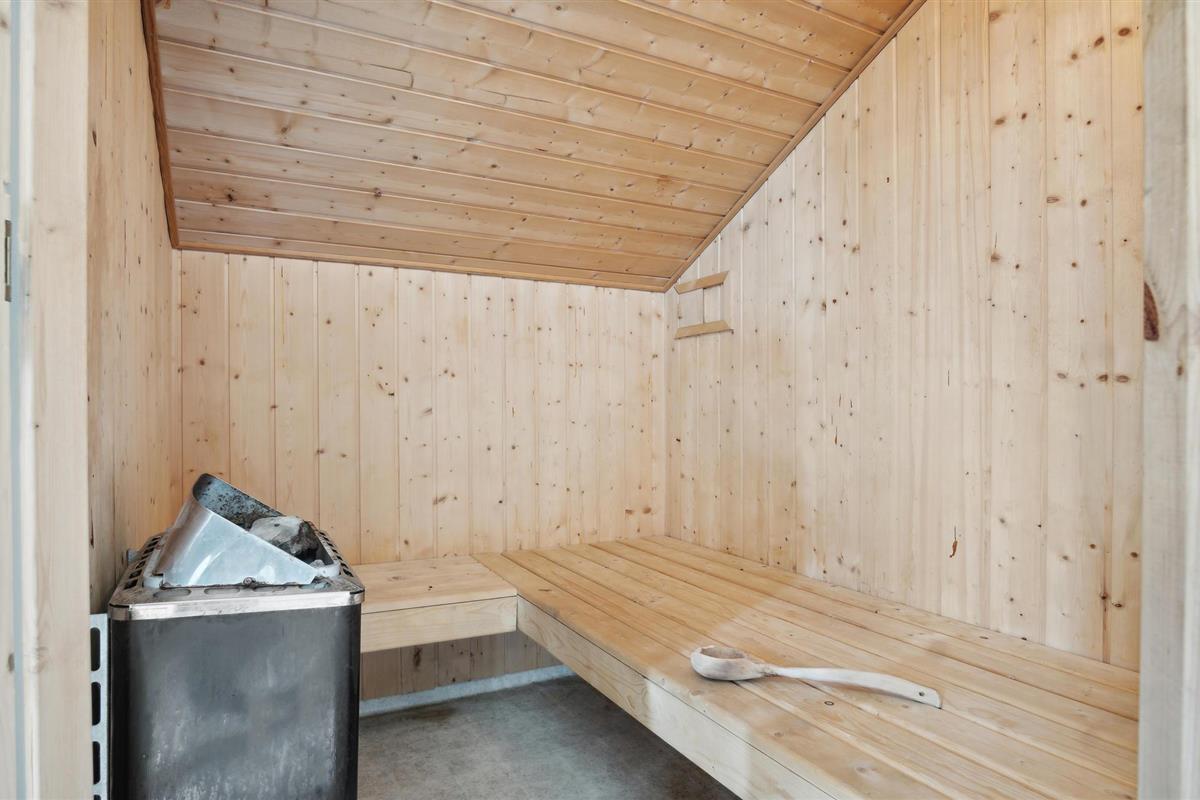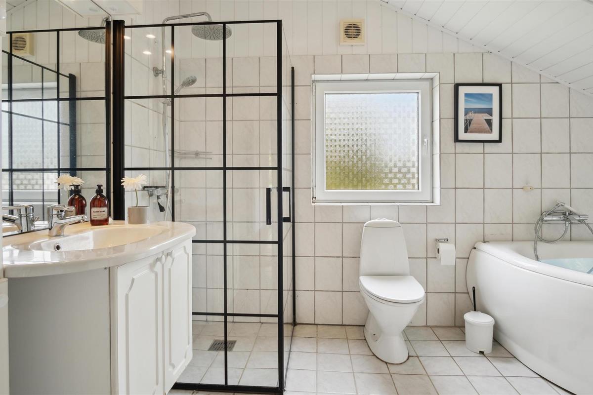Binnen biedt de grote en mooie badkamer met spa en sauna extra comfort en de mogelijkheid voor gezellige wellness-avonden. Het huis is omgeven door verschillende terrassen, waarvan sommige overdekt zijn, zodat u in het comfortabele tuinmeubilair volop kunt genieten van de lange, heldere avonden.