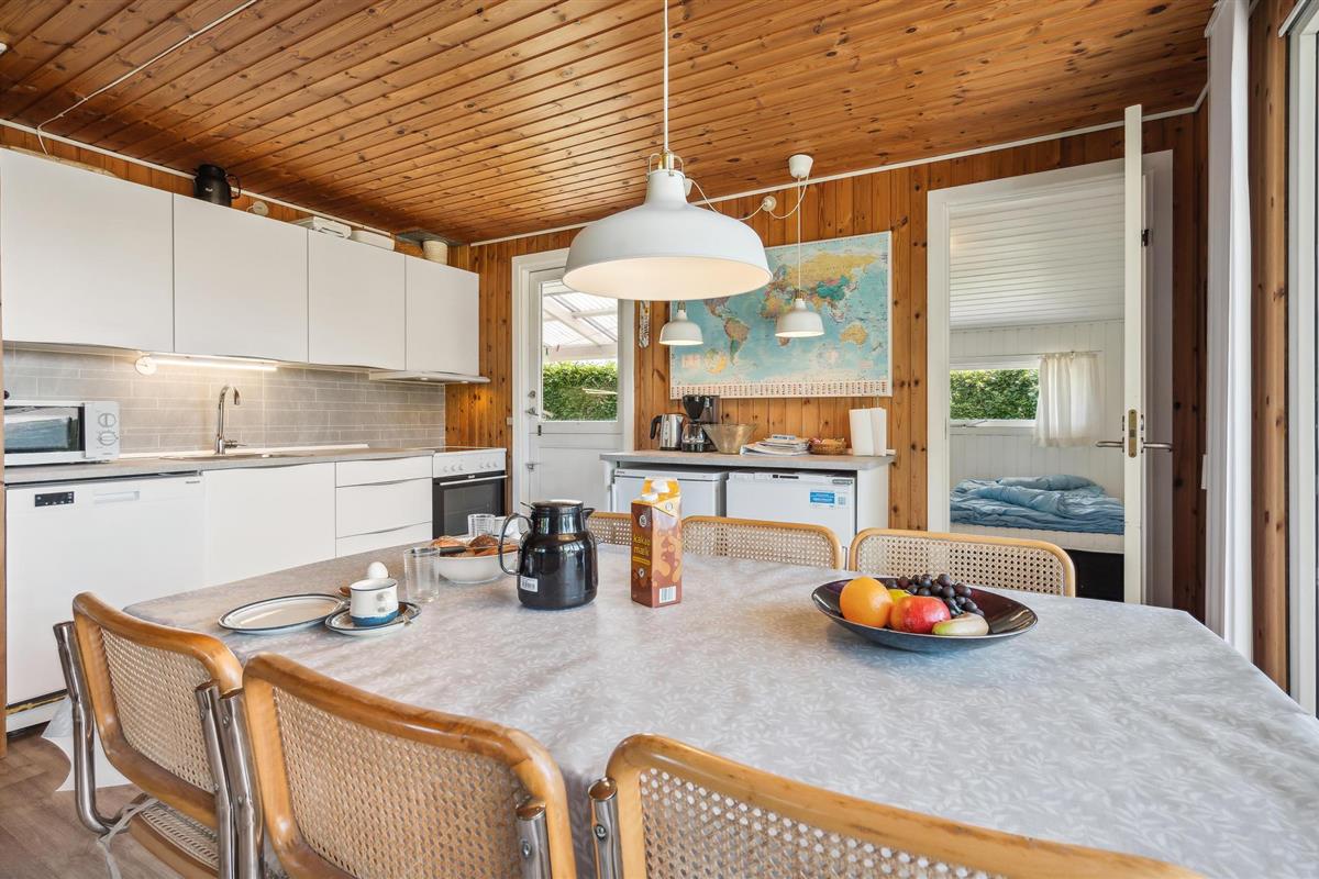 Knus vakantiehuis in Hejlsminde met open keuken, houtkachel en mooie tuin voor een ontspannen verblijf.