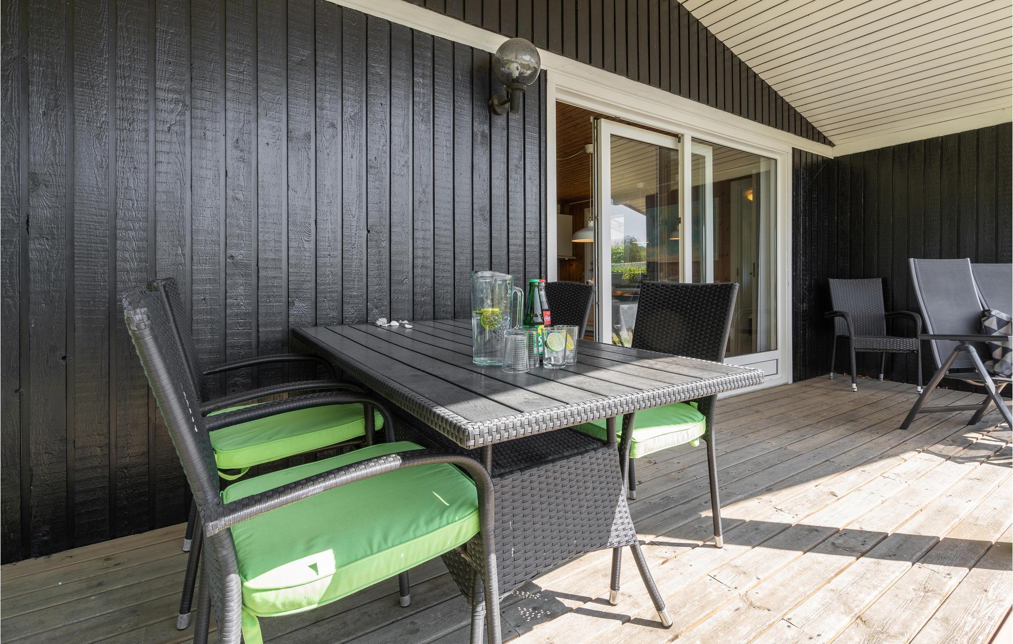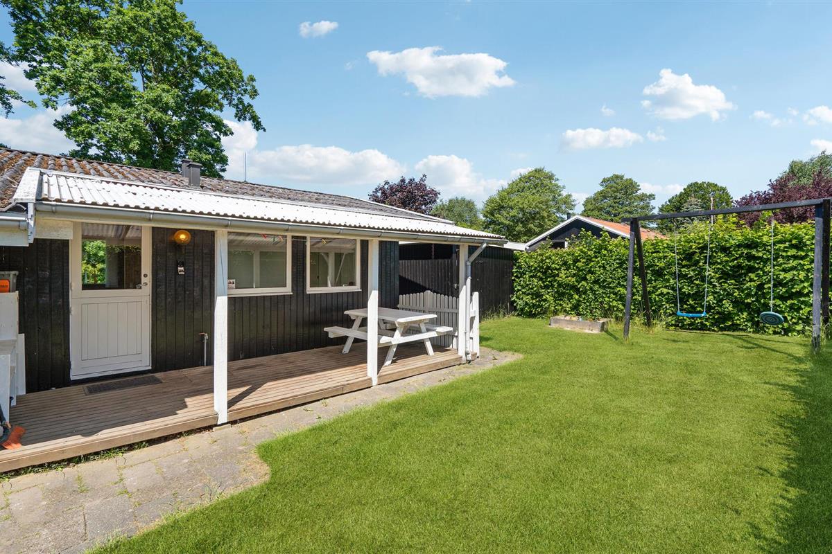 Het huis is centraal gelegen in een groot maar rustig vakantiegebied met veel paden voor ontspannen wandelingen. Er is ook een speeltuin en balveld in de buurt. Legoland, Givskud Zoo, Slotssøbadet en prachtige bossen bij de historische Skamlingsbanken liggen op minder dan een uur rijden.