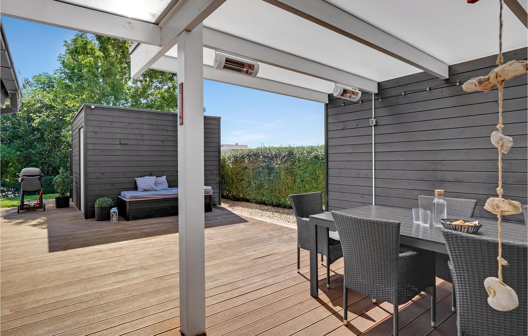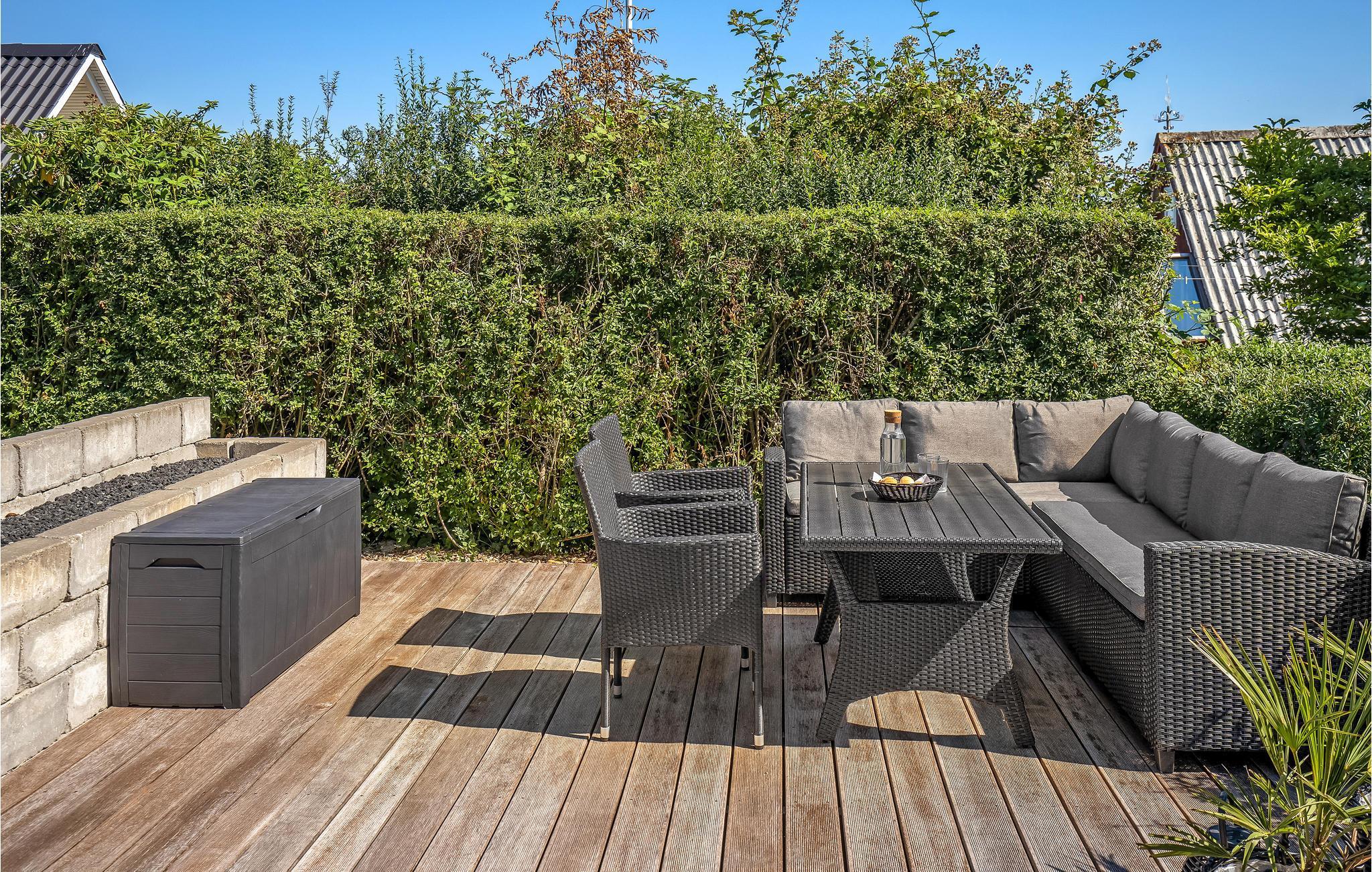 Dit moderne vakantiehuis ligt aan een rustige weg. Het is gebouwd in 2019 en heeft een prachtig ruim terras, dat deels overdekt is en waar u zeker veel tijd zult doorbrengen. Daarnaast is er een verzonken terras in de tuin, dat door de constructie windbescherming biedt en heerlijk is om te zonnebaden. Er is een buitendouche bij het huis, wat vooral praktisch is als u na een bezoek aan het strand het zand en zout water wilt afspoelen. Het strand is niet ver weg, dus u kunt er altijd een spontaan uitstapje naartoe maken.