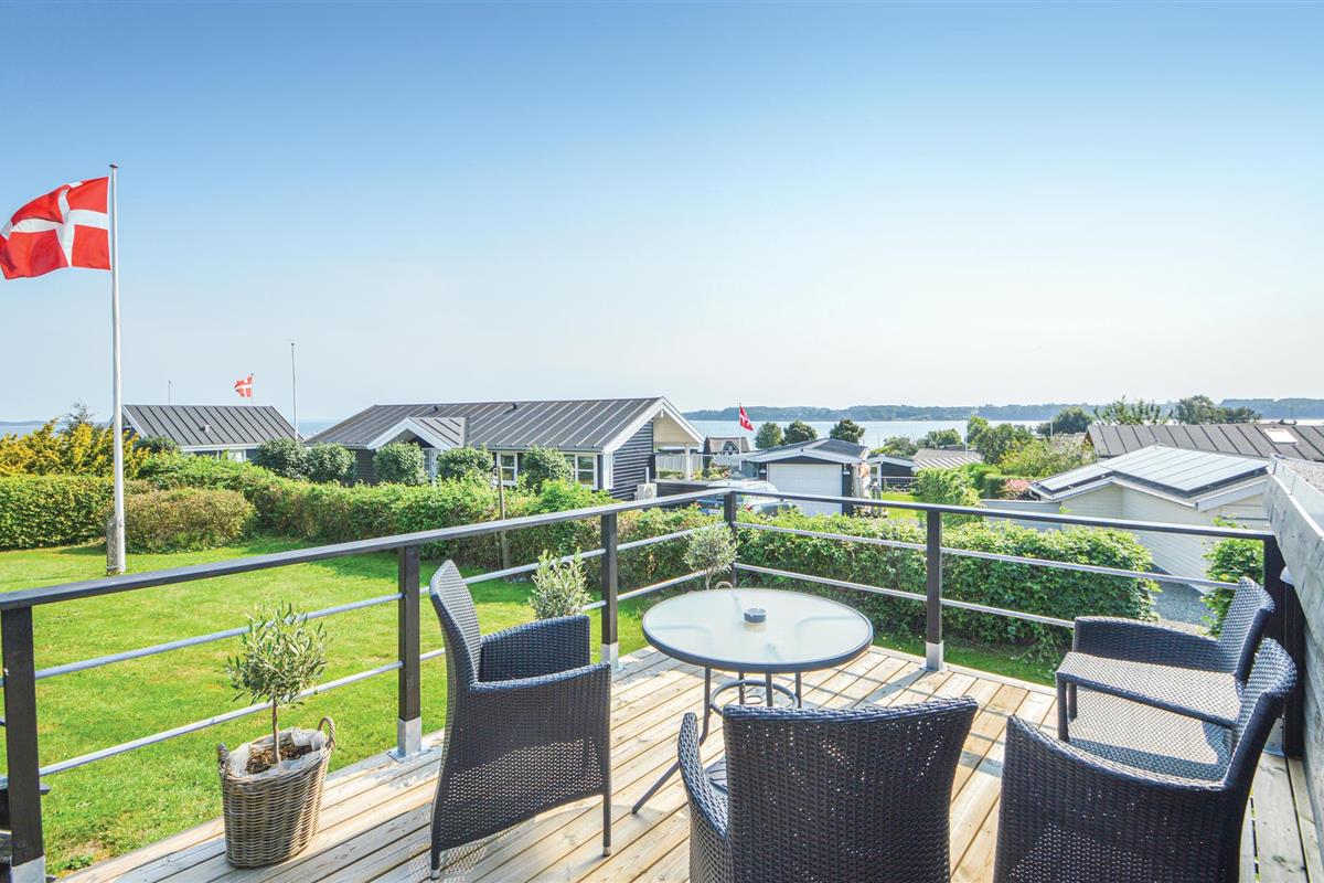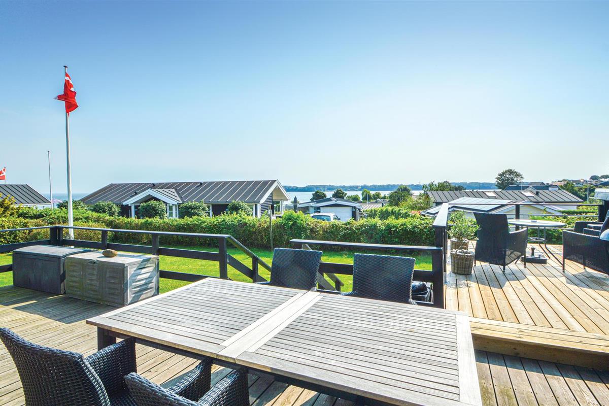 Mooi vakantiehuis met zeezicht. Hier woont u in een rustige straat dicht bij het water. Er zijn meerdere terrassen op het grote terrein, die zich op verschillende niveaus bevinden en dus afhankelijk van het weer luwte kunnen bieden. Geniet van het prachtige uitzicht op de Kleine Belt.