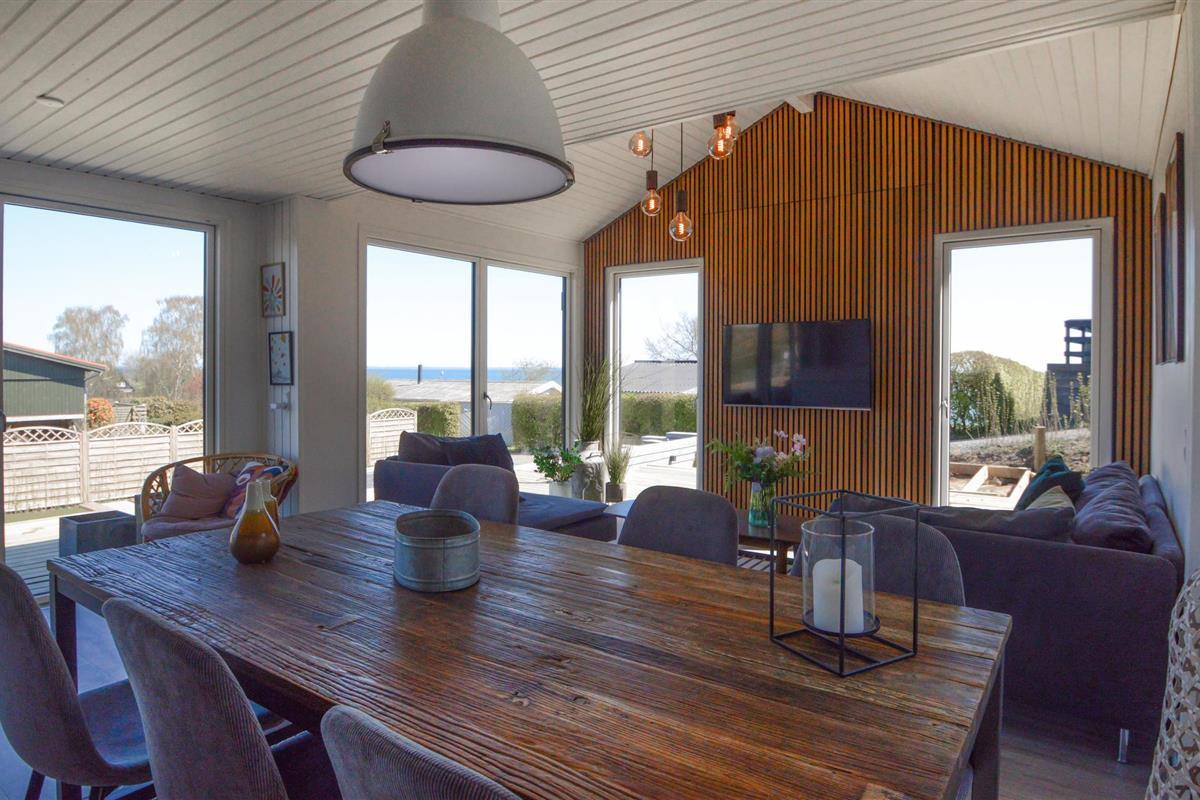 Geniet van een prachtig gerenoveerd vakantiehuis met buitenspa en uitzicht op Lillebælt in Hejlsminde.