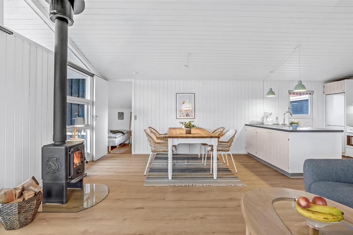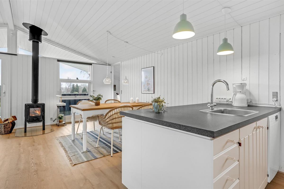 De lichte muurkleuren weerspiegelen het natuurlijke licht, wat de natuurlijke sfeer van het hele huis versterkt. Verder nodigt dit moderne interieur je uit om je helemaal thuis te voelen in dit vakantiehuis op Hejlsminde Strand. De hele leefruimte is onderling verbonden, waardoor het voor u heel gemakkelijk is om u vrij en vloeiend te verplaatsen. Stelt u zich voor dat u een lekker ontbijt met vers gezette koffie bereidt in deze ideaal uitgeruste keuken en vervolgens buiten of binnen aan tafel gaat om samen de dag aan te pakken.