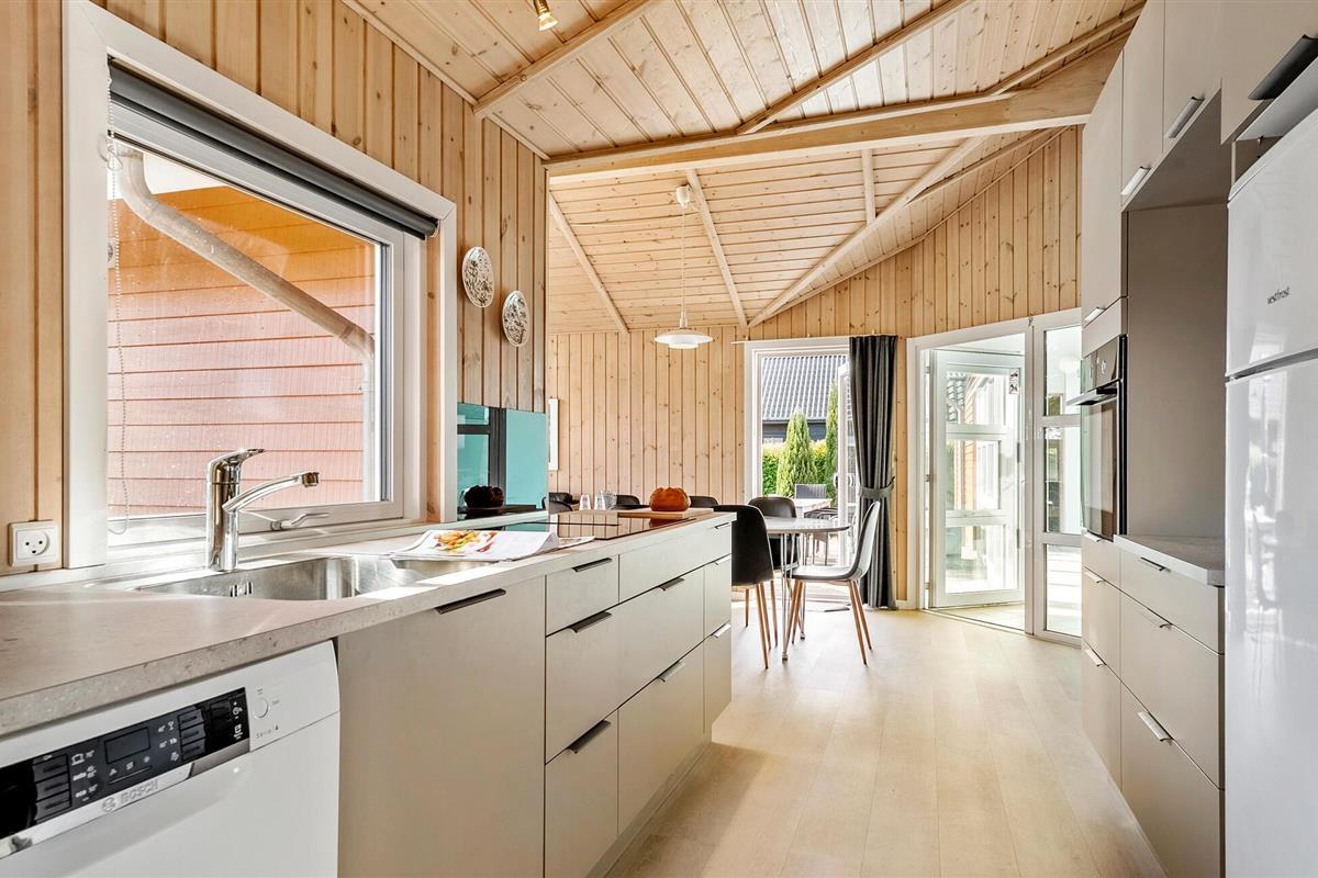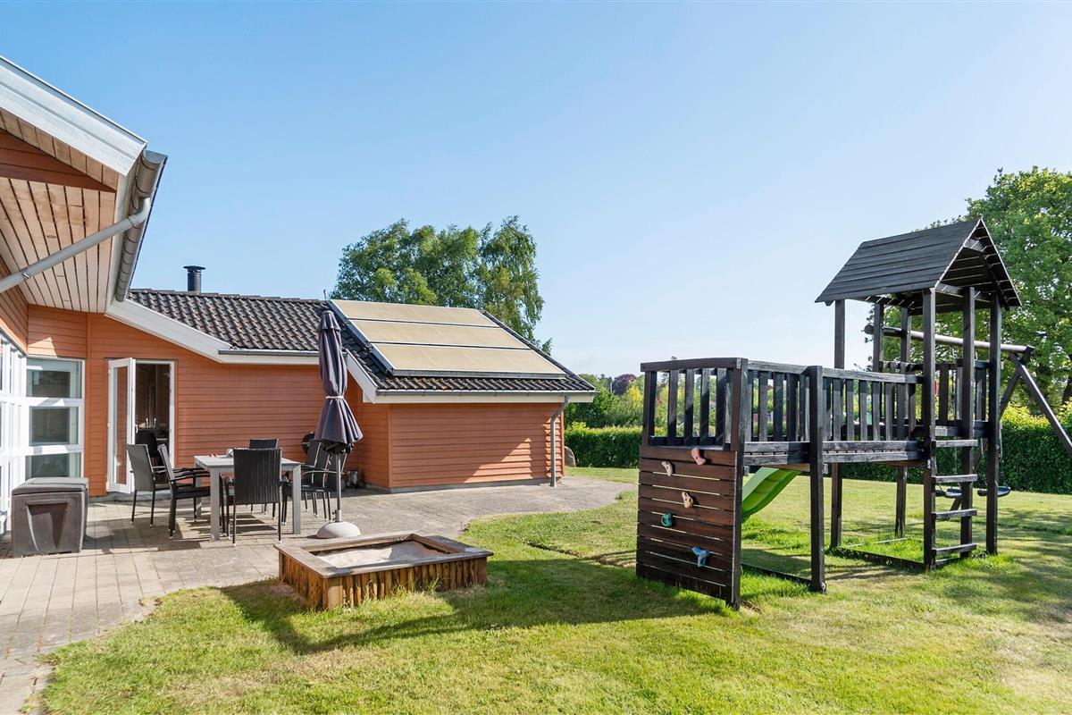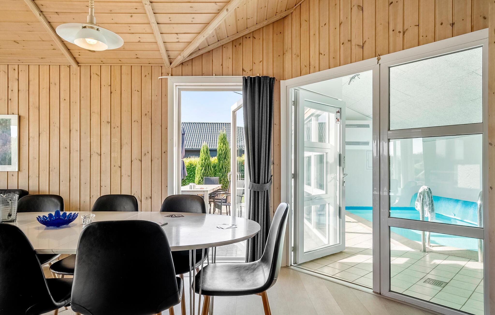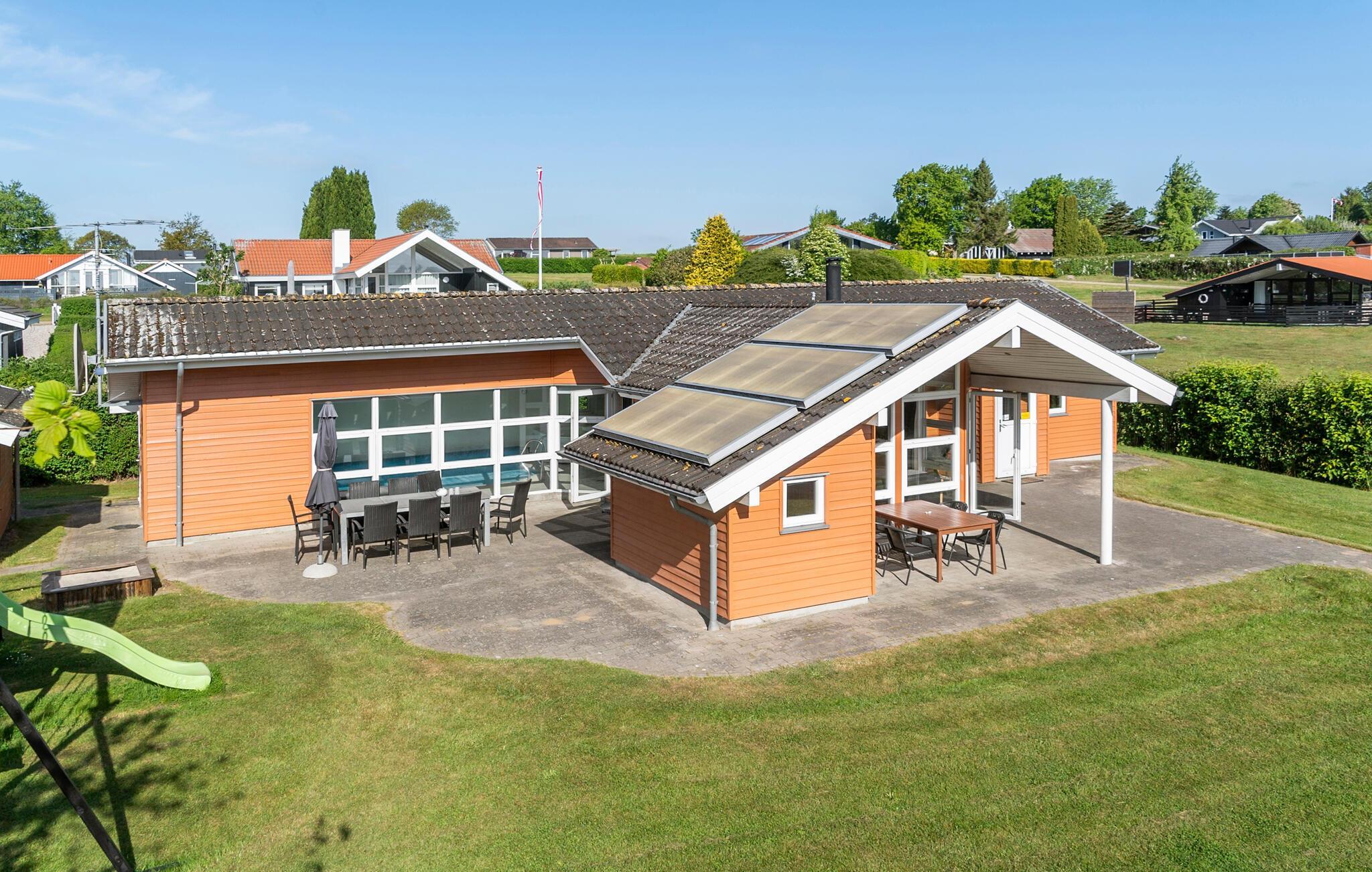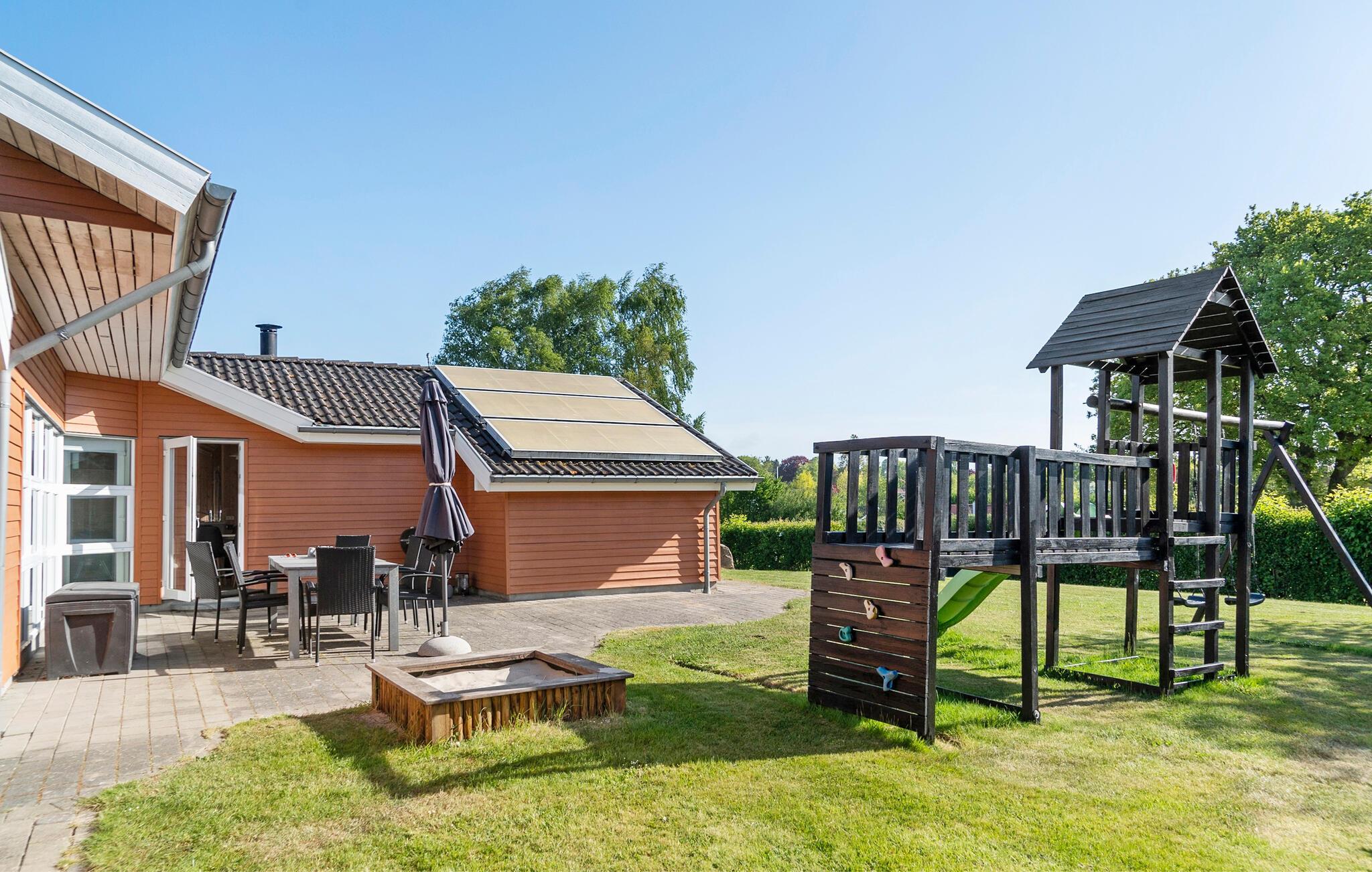 Breng ontspannende dagen door in dit hoogwaardige vakantiehuis niet ver van de Kleine Belt. De mooie inrichting en aangename houten sfeer creëren de perfecte omstandigheden voor een ontspannen vakantie met het hele gezin. De open woonkamer combineert de keuken, eethoek en zithoek tot een harmonieus geheel. Grote raamfronten overspoelen de kamer met licht en bieden een wijds uitzicht op het terras en de goed onderhouden tuin. Een bijzonder hoogtepunt van het interieur is het zwembad, dat bij elk weertype zwemplezier biedt met uitzicht op het groen. De whirlpool en sauna nodigen ook uit om te ontspannen en tot rust te komen.
