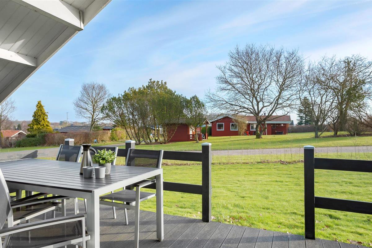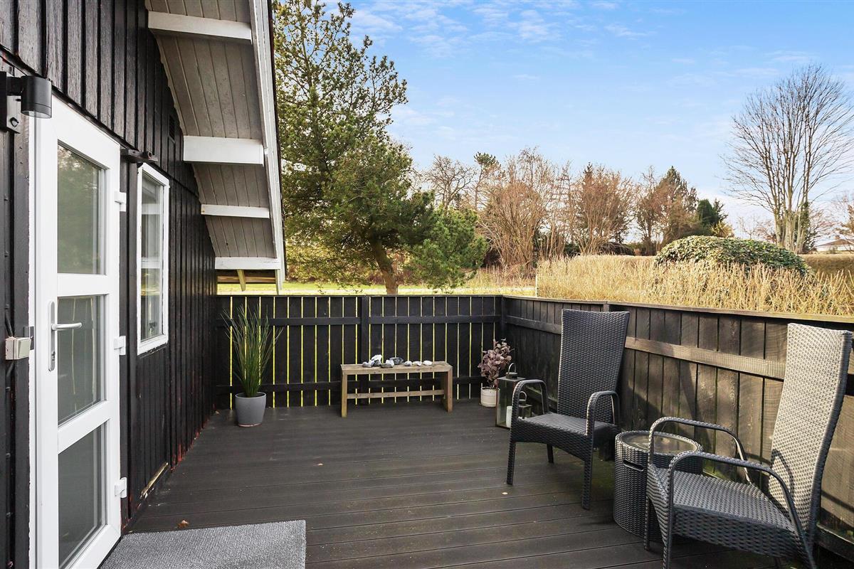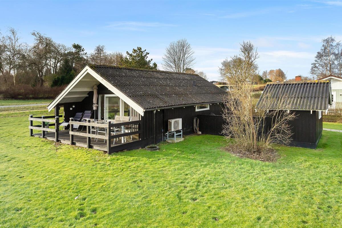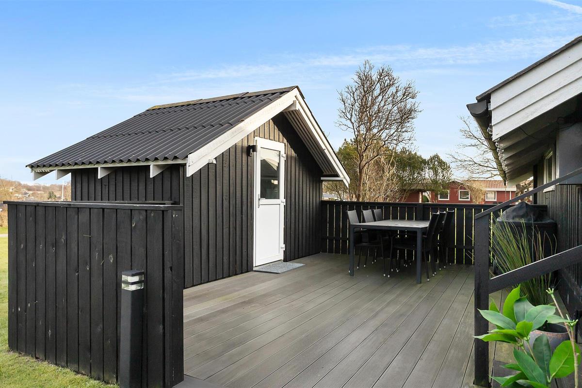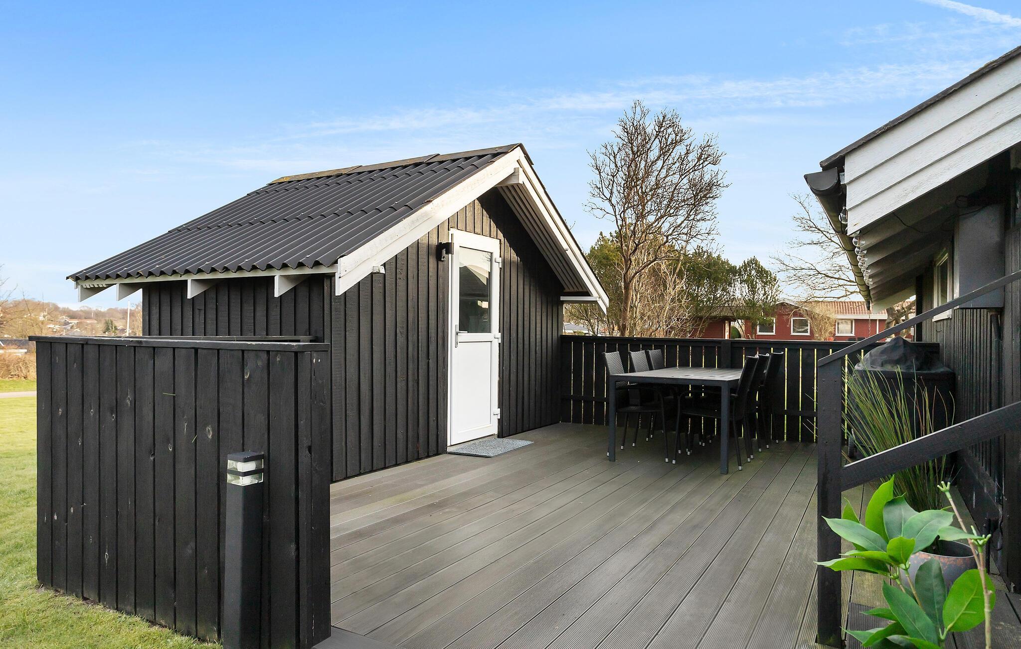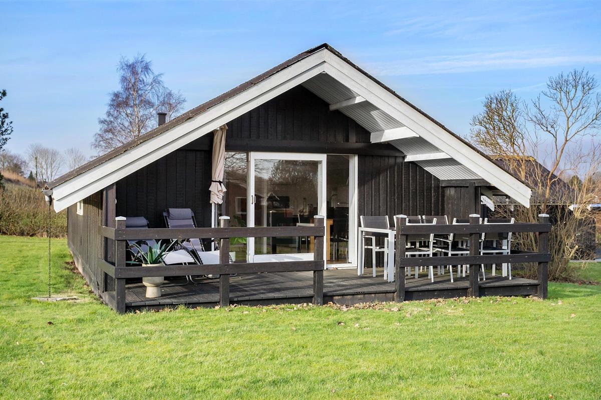 Gezellig vakantiehuis in Hejlsminde, dichtbij strand en natuur, met tuin en twee terrassen voor ontspanning.