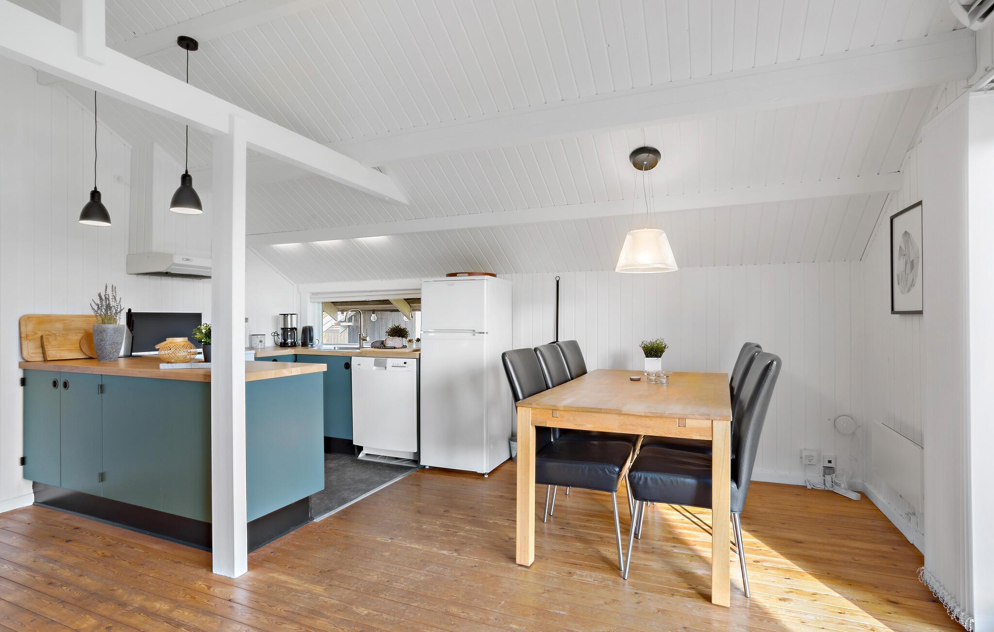 Geniet van rust en ontspanning in dit gezellige huis in Hejlsminde. Heldere kleuren en de gezellige gemeenschappelijke ruimte nodigen je uit om te ontspannen op de bank of samen te koken. Voel je hier thuis en stap vanuit de woonkamer het terras op, waar je de beste omstandigheden vindt voor gezamenlijke maaltijden en zonnebaden in de buitenlucht. Ontdek een tweede terras waar je kunt barbecueën terwijl je kinderen met de bal spelen op het gazon.
