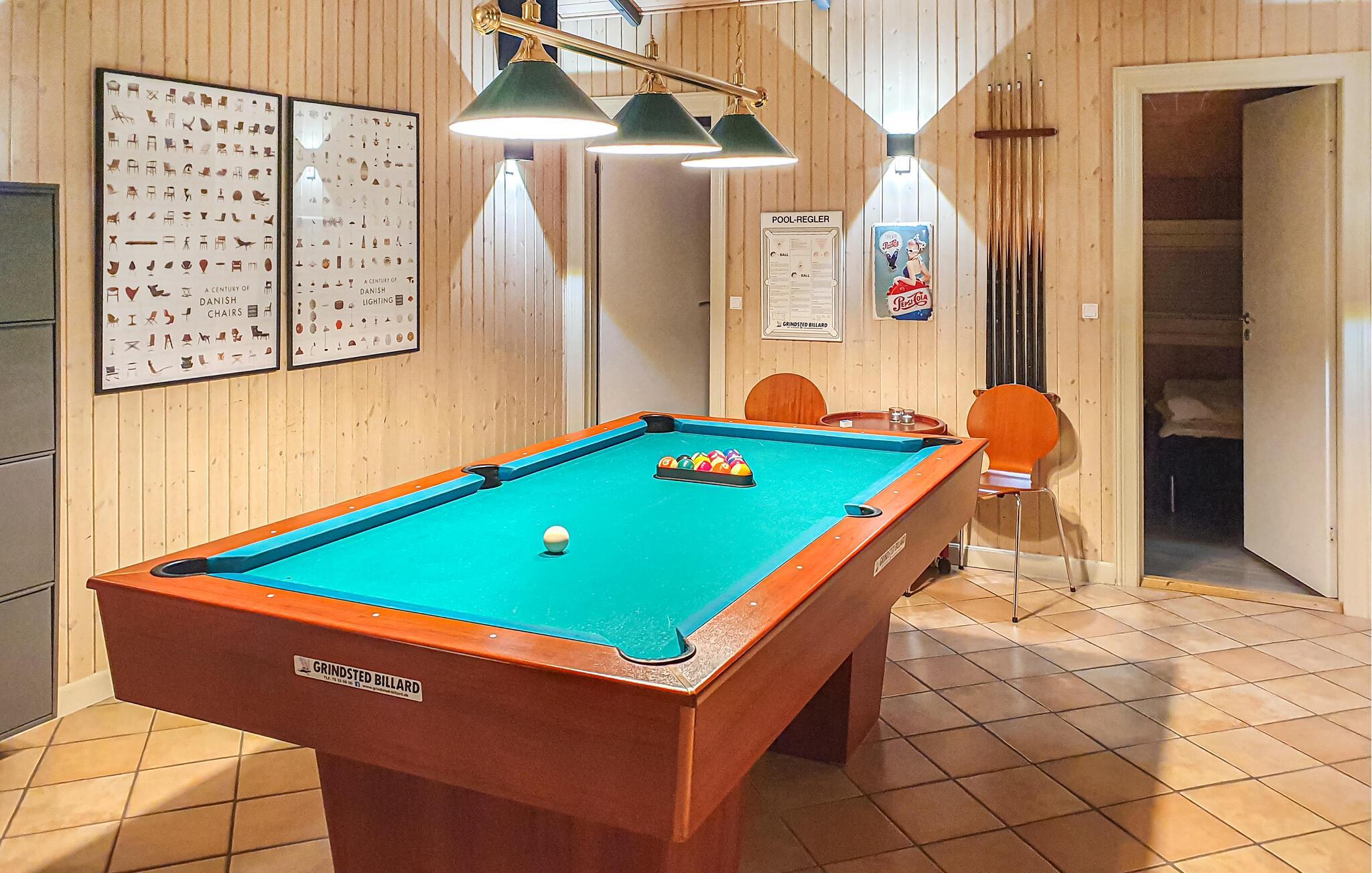 Je ruime vakantiehuis niet ver van het dichtstbijzijnde strand aan de Kleine Belt combineert een stijlvolle inrichting met de beste voorwaarden voor een geslaagd verblijf. Het biedt genoeg ruimte voor een groot gezin en het open ontwerp zorgt voor een harmonieuze woonsfeer. De woonkamer combineert keuken, eethoek en zithoek tot een gezellige ontmoetingsplek om samen tijd door te brengen. Grote ramen zorgen voor veel licht en uitzicht op het groen, ideaal om te ontspannen. De whirlpool, het stoombad en de sauna zorgen voor extra momenten van welzijn, terwijl het binnenzwembad plezier belooft voor jong en oud. Gebruik de pooltafel voor uren speelplezier in de activiteitenruimte.