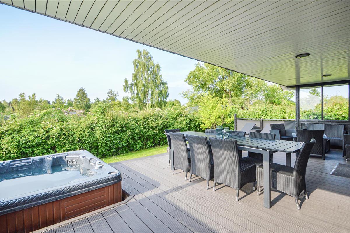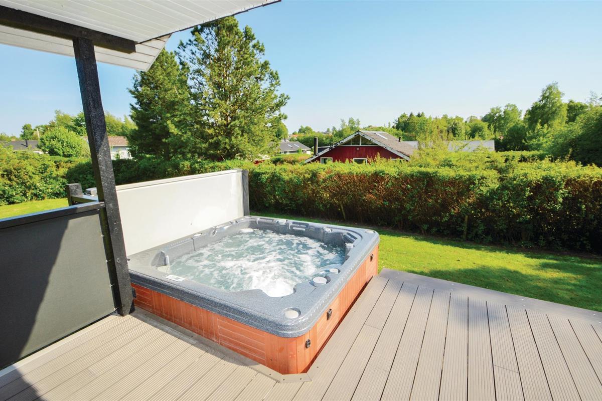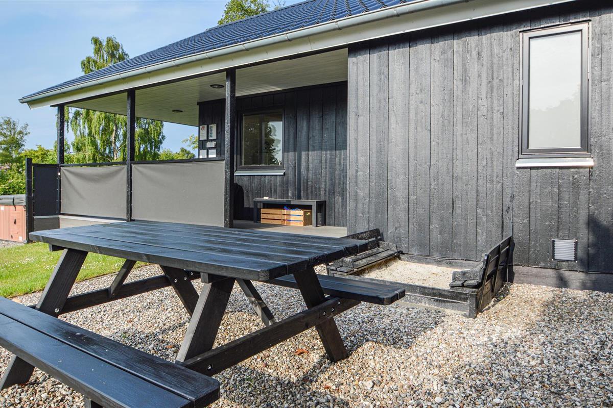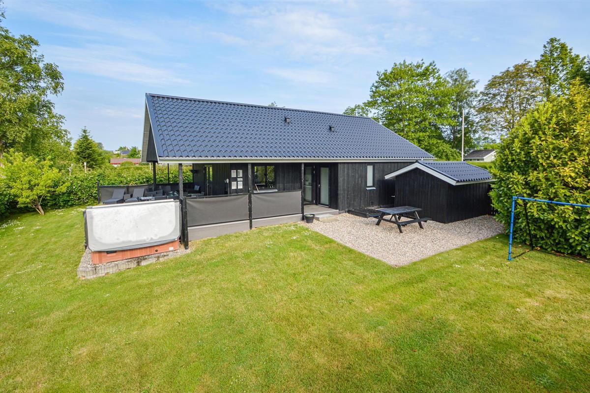 Comfortabel houten vakantiehuis met tuin, overdekt terras en buiten bubbelbad nabij strand en natuur in Hejlsminde.