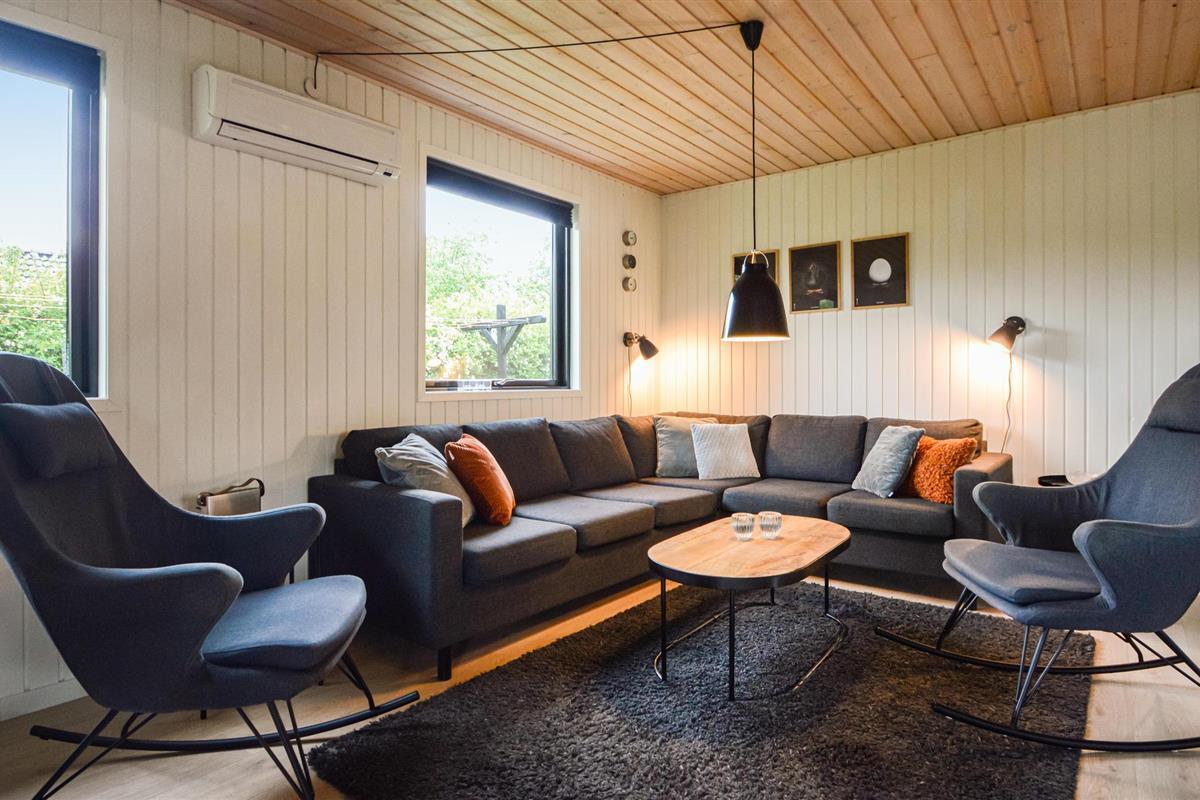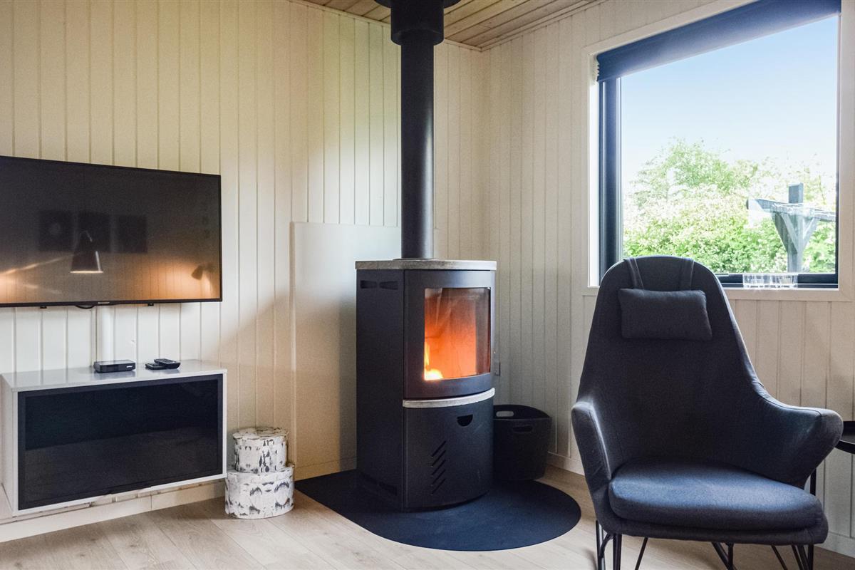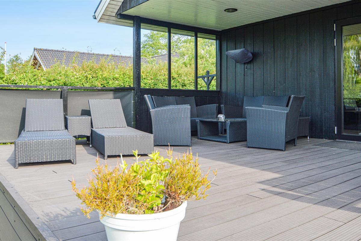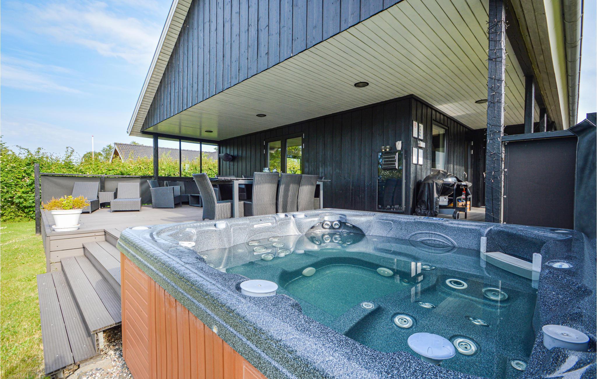 Comfortabel houten vakantiehuis met tuin, overdekt terras en buiten bubbelbad nabij strand en natuur in Hejlsminde.
