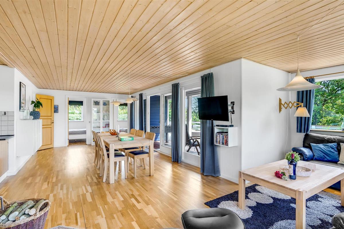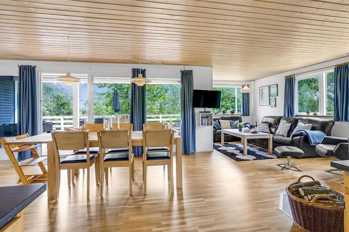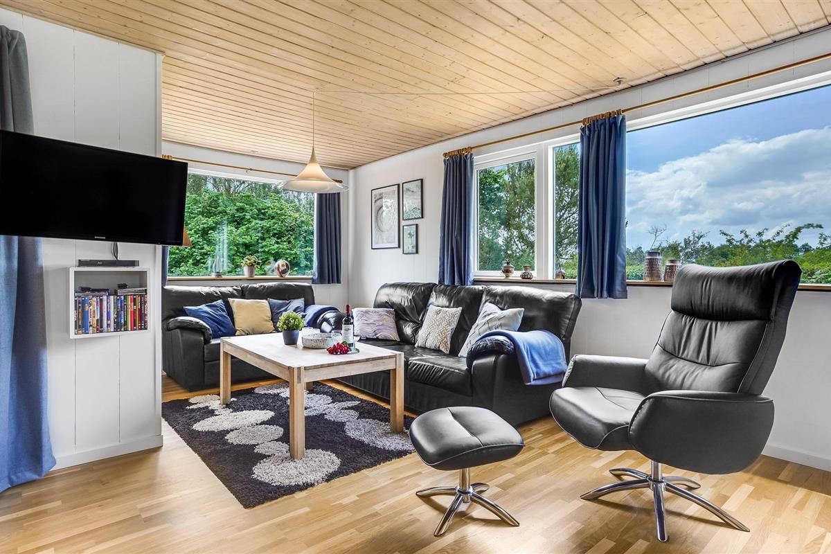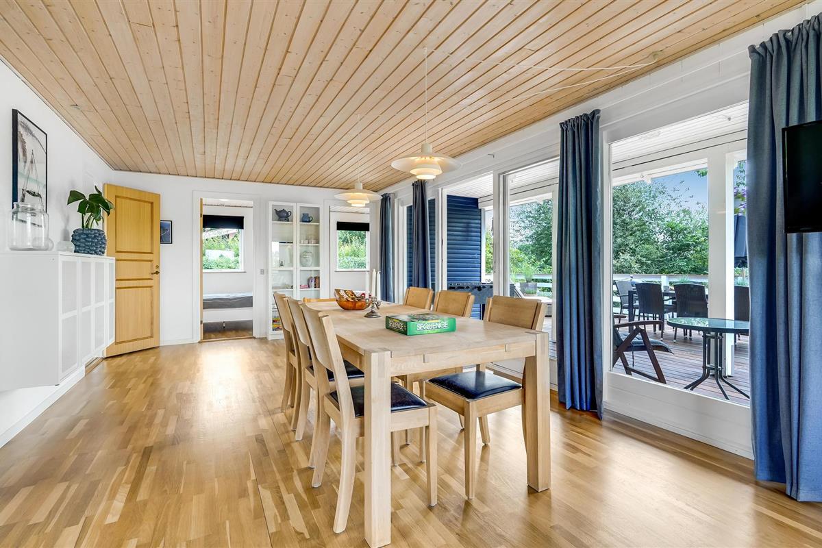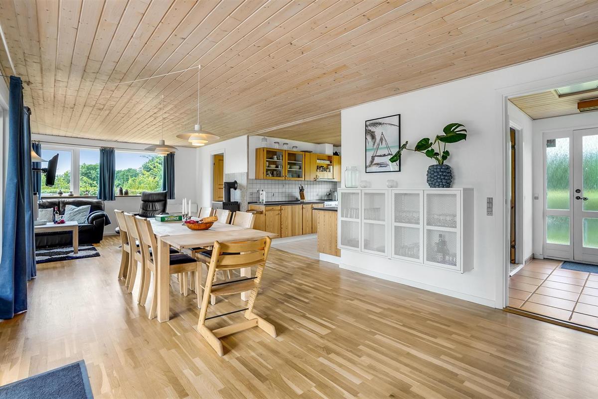 Dit ruime, verhoogde vakantiehuis bij Hejlsminde is de ideale accommodatie voor een gezinsvakantie voor maximaal twee gezinnen. Er is veel ruimte binnen en de grote ramen overspoelen de open woon- en keukenruimte met licht. Veel charmante details creëren hier een gezellige sfeer. Je kunt je verheugen op samen koken, gezellige spelletjesavonden en gezellige filmavonden. Terwijl je geniet van je zelfgekookte vakantiemaaltijden, heb je een prachtig uitzicht op de tuin.