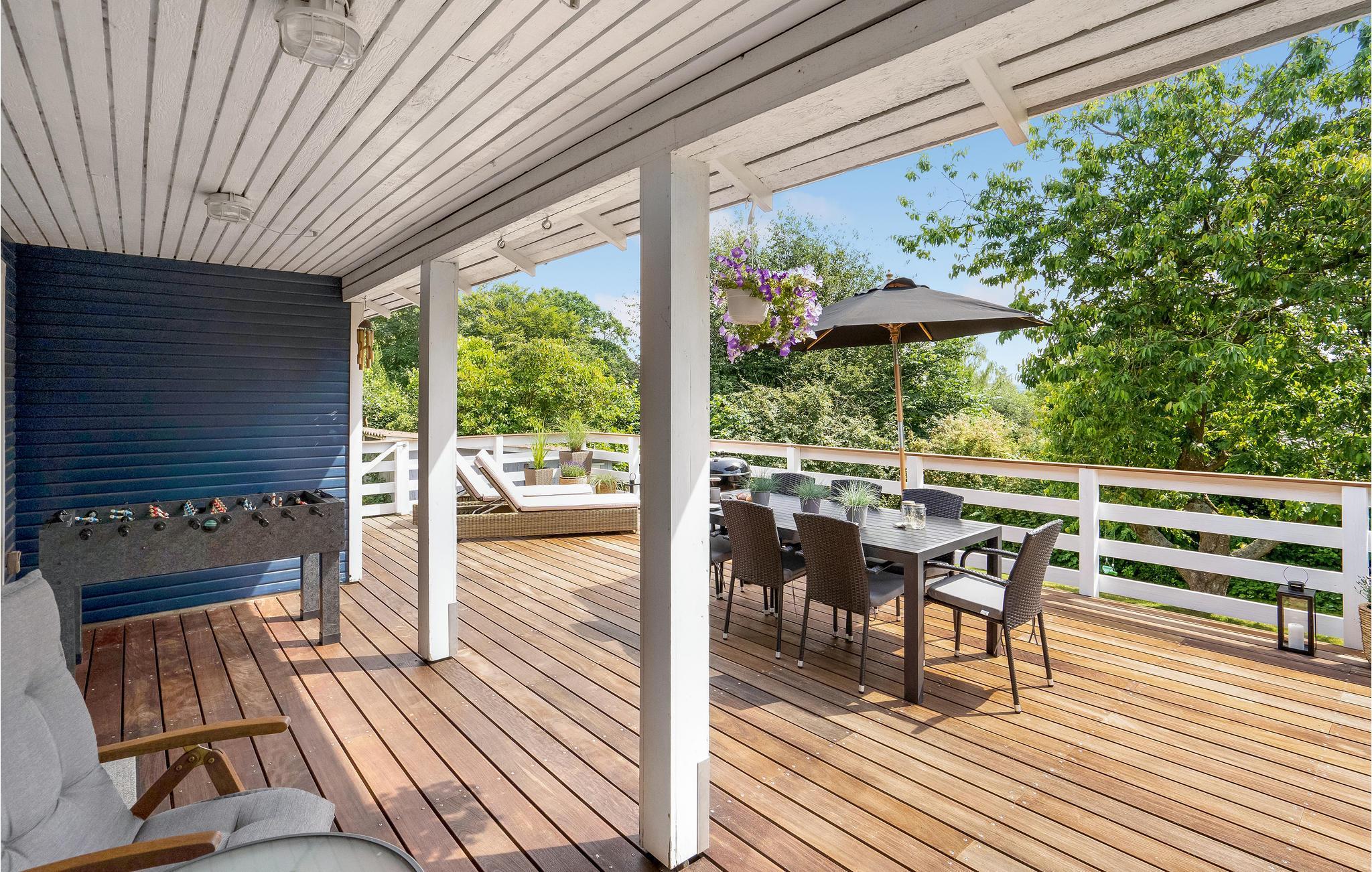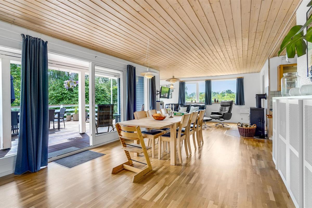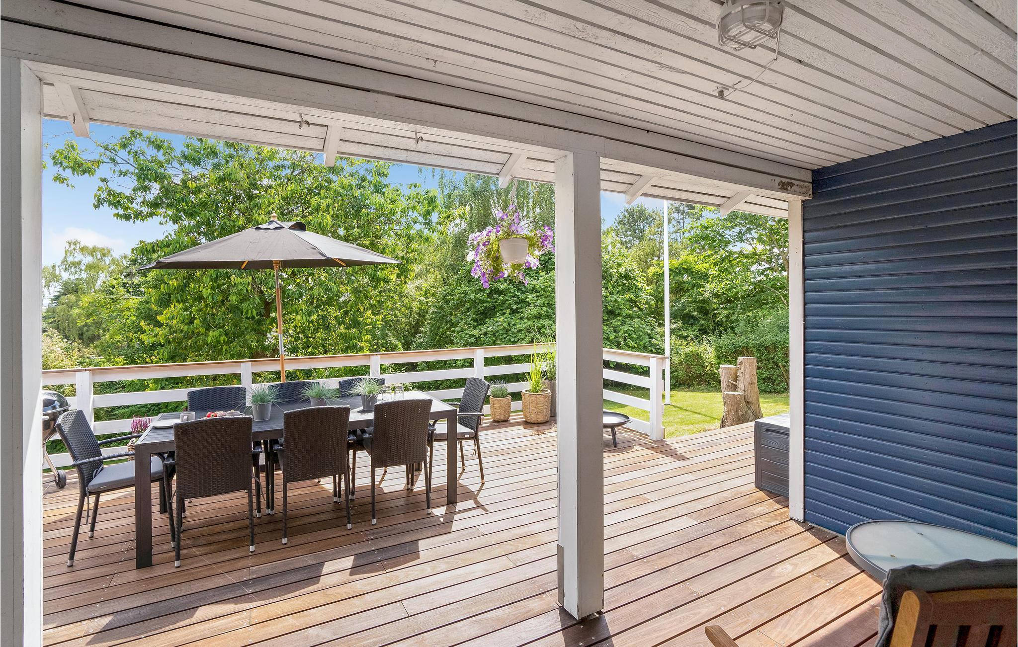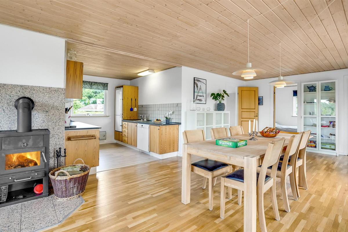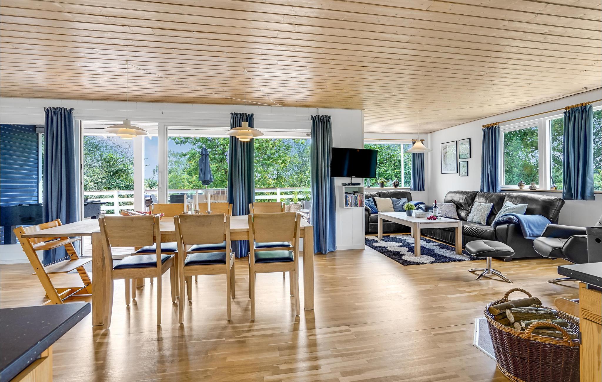 Dit ruime, verhoogde vakantiehuis bij Hejlsminde is de ideale accommodatie voor een gezinsvakantie voor maximaal twee gezinnen. Er is veel ruimte binnen en de grote ramen overspoelen de open woon- en keukenruimte met licht. Veel charmante details creëren hier een gezellige sfeer. Je kunt je verheugen op samen koken, gezellige spelletjesavonden en gezellige filmavonden. Terwijl je geniet van je zelfgekookte vakantiemaaltijden, heb je een prachtig uitzicht op de tuin.