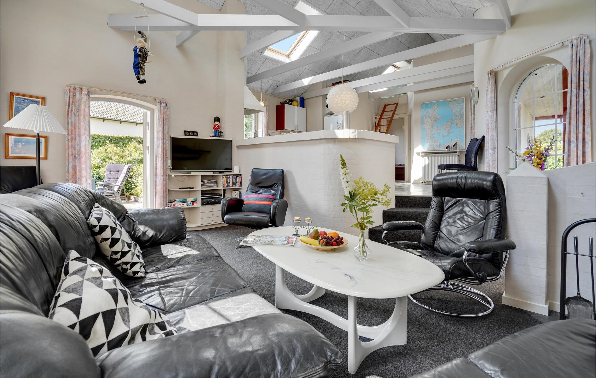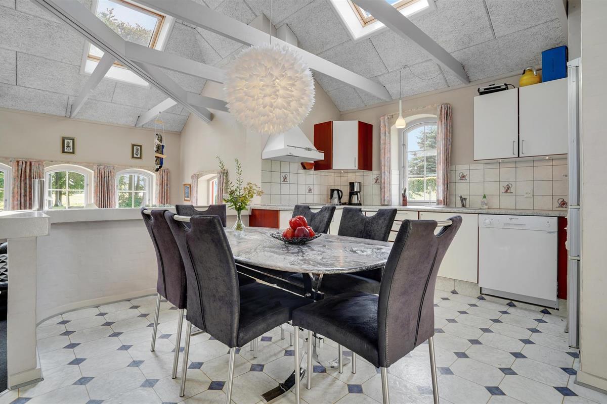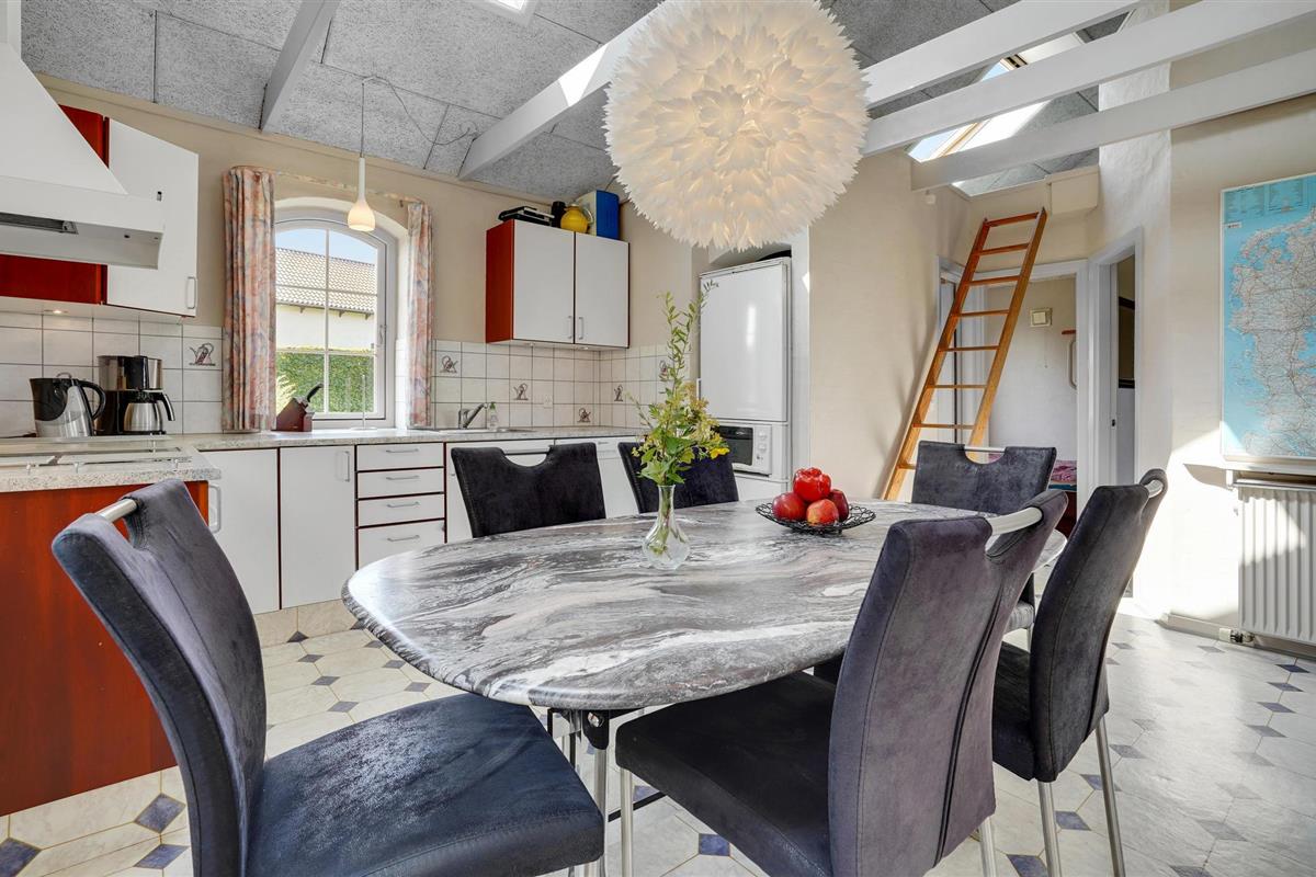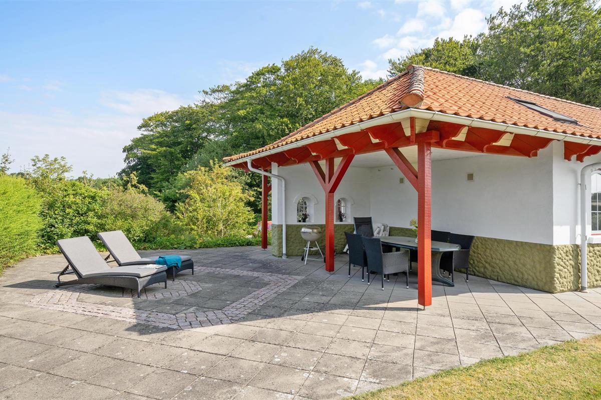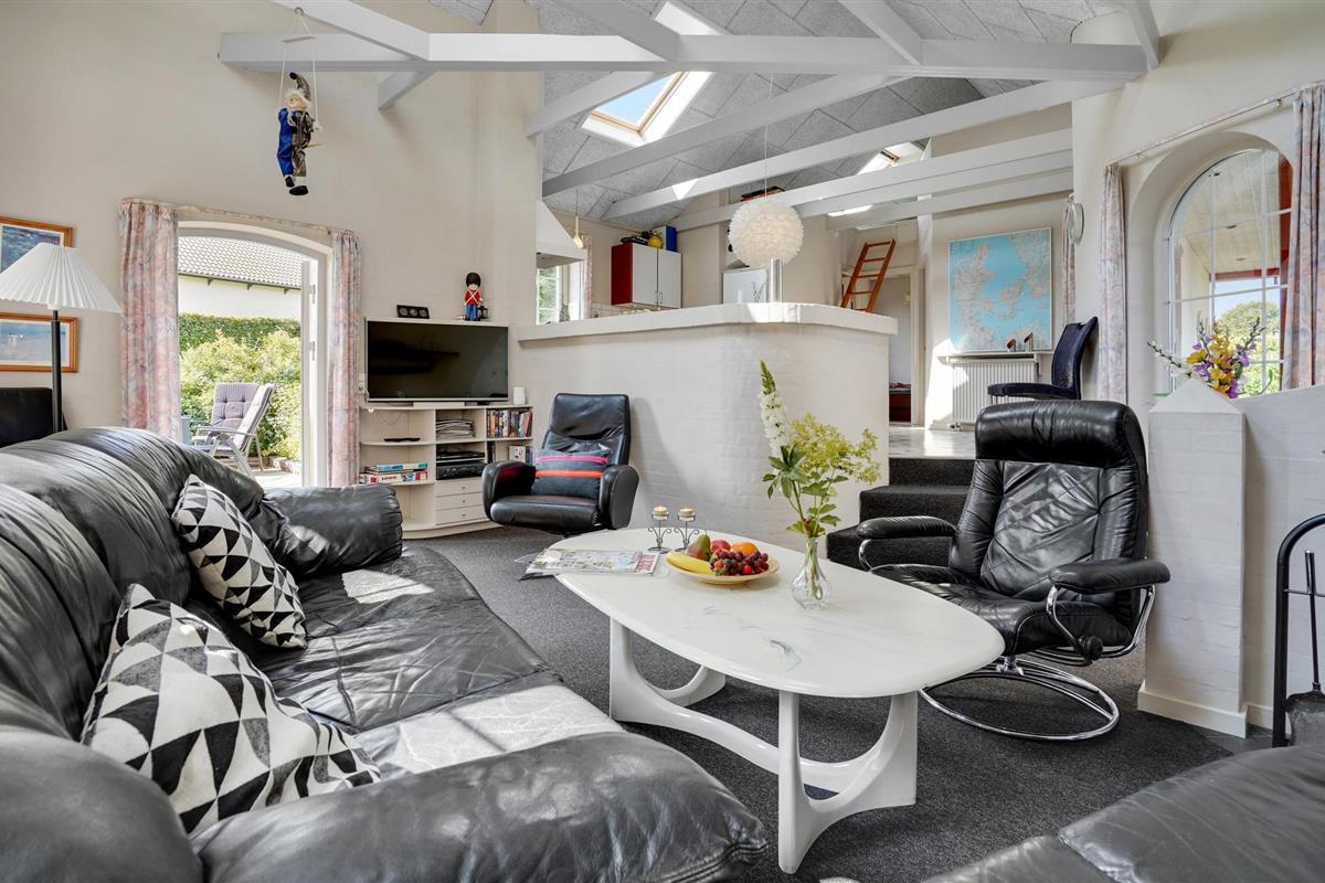 Aan de rand van het vakantiegebied, aan het einde van een doodlopende weg grenzend aan een klein bos, staat dit kwaliteitsvakantiehuis. Het huis is volledig geïsoleerd en wordt centraal verwarmd. Hierdoor is het in de winterhelft lekker warm en op warme zomerdagen comfortabel binnen. Vanuit de ramen en het terras is er een prachtig zeezicht op de Kleine Belt door een kleiner bos dat op een deel van het terrein staat. Het huis is praktisch ingericht, met hoge plafonds en geluidsabsorberende plafondmaterialen, een grote badkamer met stoombad, sauna, jacuzzi samen met een kleinere badkamer. Op de grote slaapzolder staat een slaapbank voor twee personen, een computer en internet. Voor sportvissers is de kust langs Hejlsminde een paradijs, hier kunt u het hele jaar door zeeforel vangen en in mei hoornvissen. Voor de kinderen zijn er drie speeltuinen op loopafstand, en het hele gezin kan genieten van het samenzijn op het fijne zandstrand met zwemwater van topkwaliteit en laag water zonder elektriciteit. Attracties zoals Legoland, het Leeuwenpark, Ribe (de oudste stad van Denemarken) liggen allemaal op minder dan een uur rijden. Het avonturenbad, Koldinghus, het Storcenter enz. liggen op 30 minuten rijden.