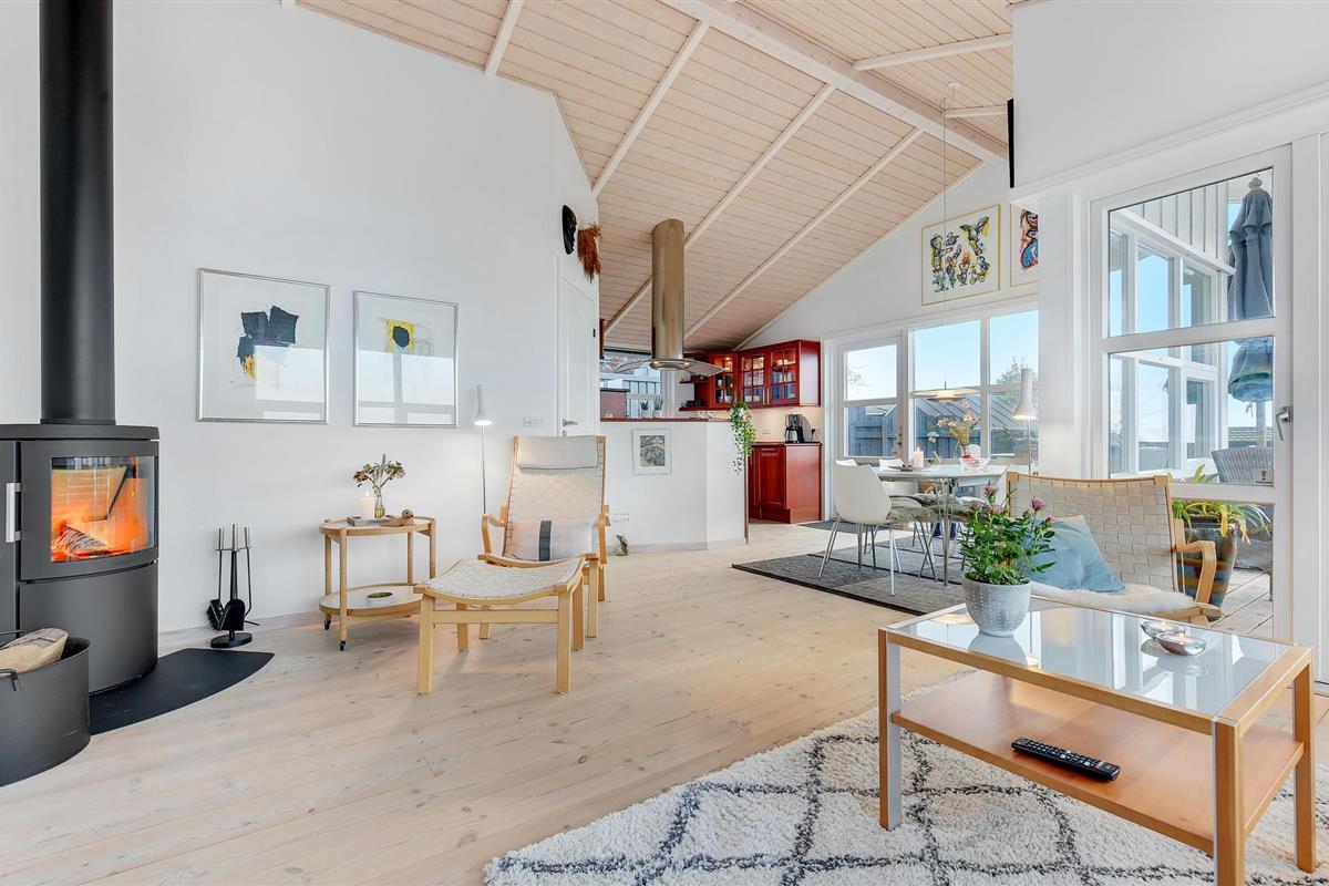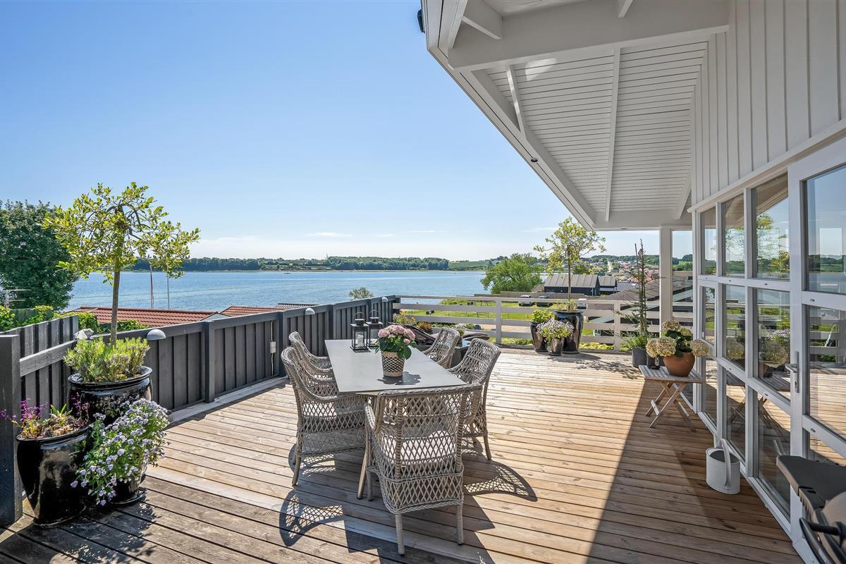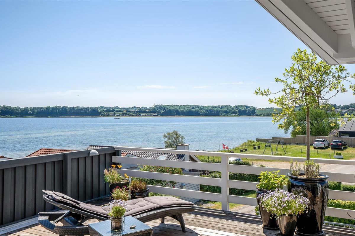 Geniet van een panoramisch uitzicht over de Kleine Belt in dit sfeervolle vakantiehuis met open keuken en ruim terras.