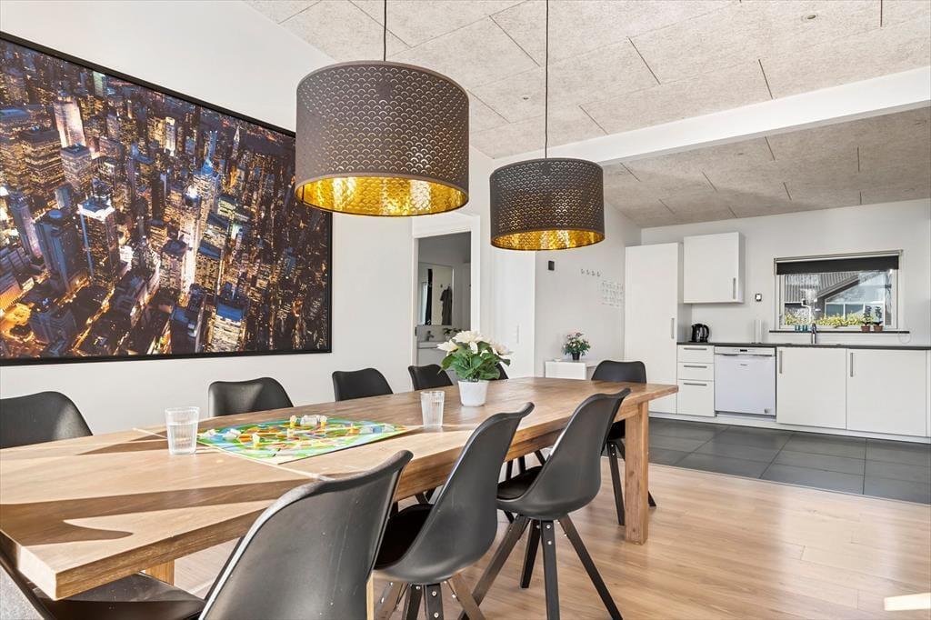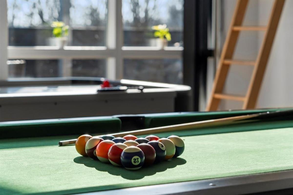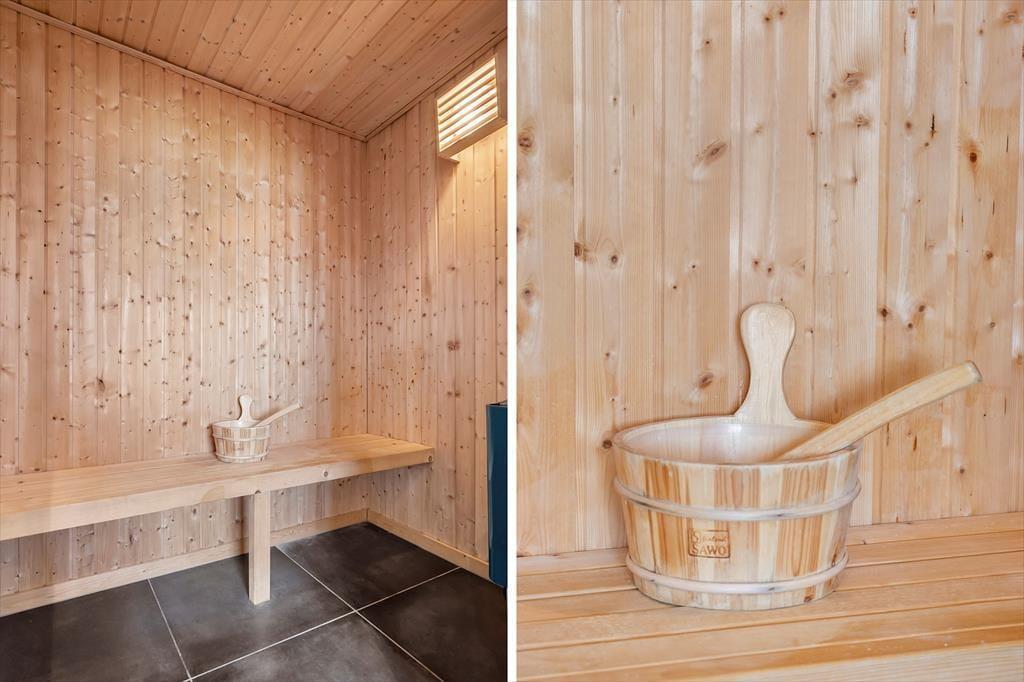 Inside, you are greeted by a bright and inviting atmosphere with modern décor and underfloor heating throughout the house, ensuring comfort regardless of the season. The large living area combines the living room, dining area, and kitchen into one, allowing the family to gather for cozy moments. The large windows bring nature inside and provide beautiful natural light. After an active day, you can relax in the spa or let the warmth of the sauna embrace you. In addition, the house features a well-equipped activity room where you can challenge your travel companions to a game of billiards, table tennis, or air hockey, creating fun holiday memories together.
