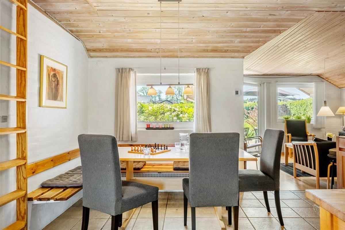 Outdoor life at Æ Skovbryn 37 is the epitome of classic Danish summer. The garden is lush and green, and because the house is set on a closed plot, there’s plenty of privacy and security – ideal for families with children. The little ones can spend hours on the swing or in the sandbox, while the adults soak up the sun from the terrace or fire up the barbecue. There’s time for long lunches in the shade, coffee with a view of the greenery, or perhaps a quiet moment with a book in hand. As evening falls and the days grow cooler, it’s extra comforting to retreat indoors and let the day’s impressions settle. And with a public playground just around the corner, there’s always something for the youngest adventurers to explore.