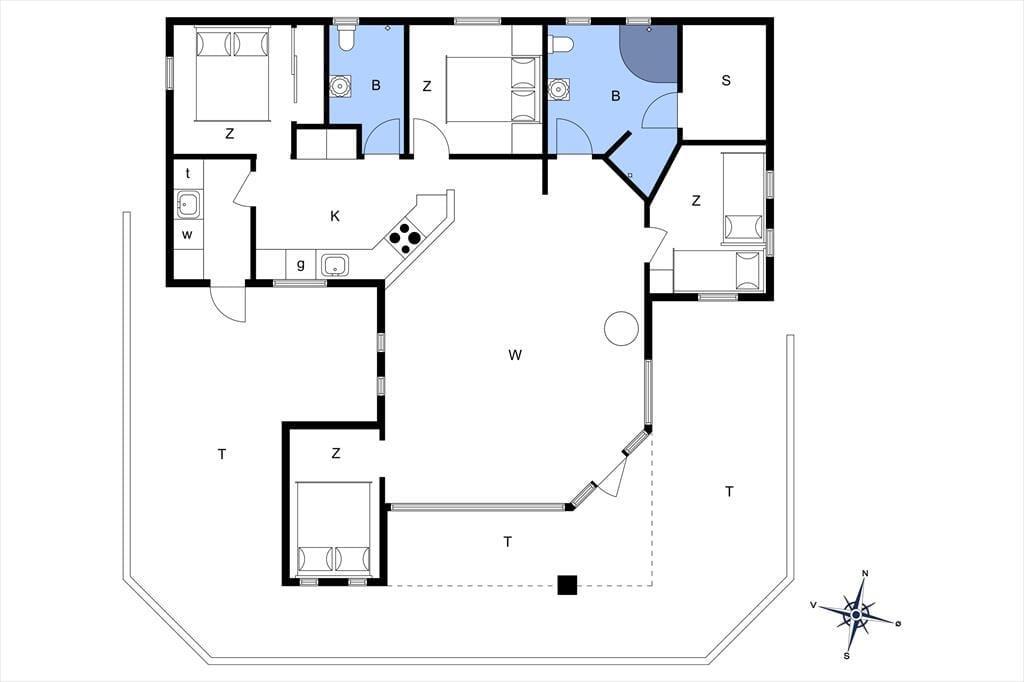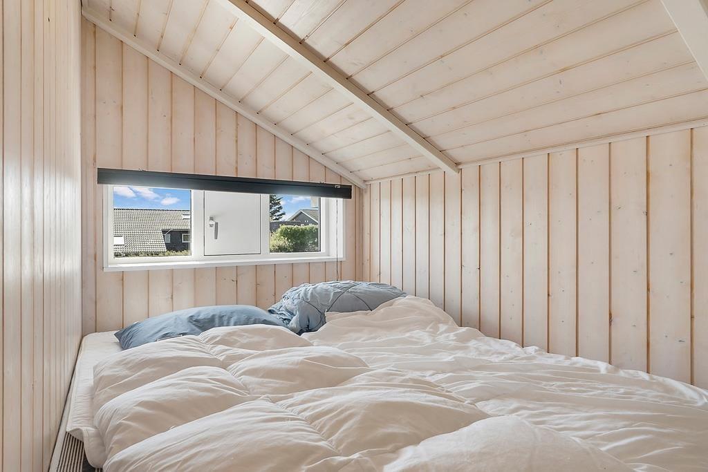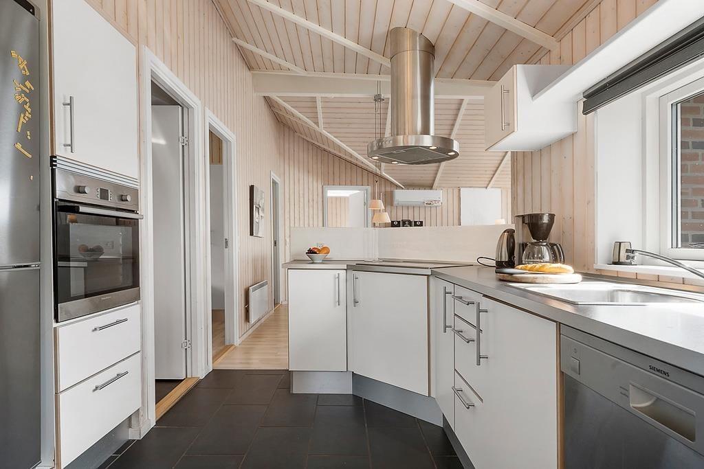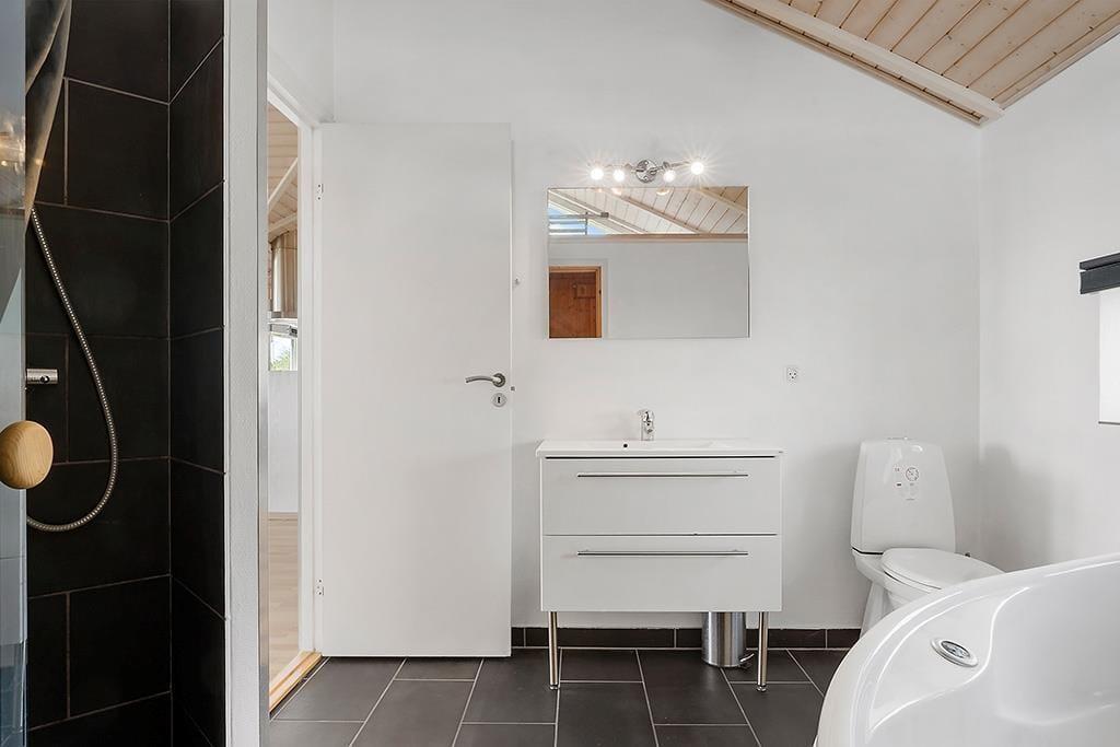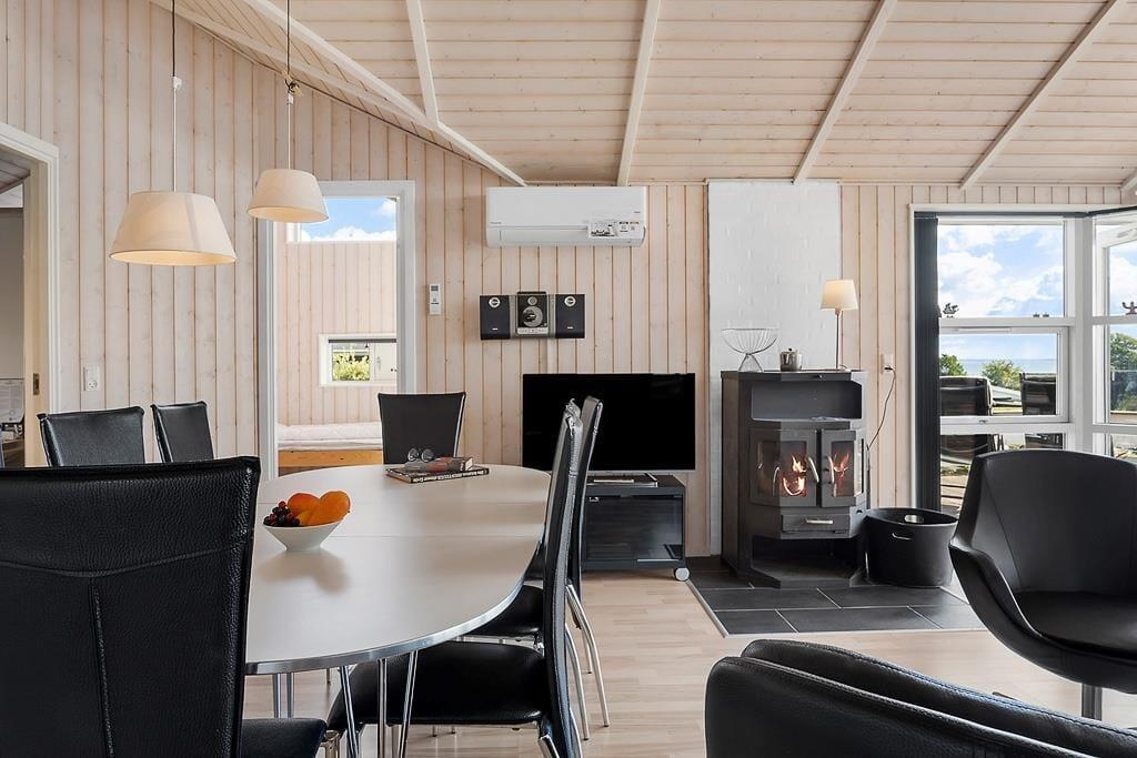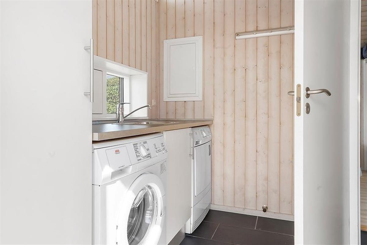 The holiday home on Teglgårdvej welcomes you into a bright and inviting space that immediately feels relaxed and homely. The central living area features high, vaulted ceilings and large windows that flood the room with daylight, creating an airy and open atmosphere. From here, you can enjoy an unobstructed view of the garden and the green surroundings – and catch a glimpse of the sea on the horizon, a constant reminder of just how close you are to the coast. The well-equipped kitchen is openly connected to the living room, setting the stage for both cooking and cosy togetherness – whether it's a quiet morning coffee or evening chats with the family. The house has two bathrooms, one of which offers both a sauna and a spa bath – perfect for those cooler evenings when you need to fully unwind and recharge.
