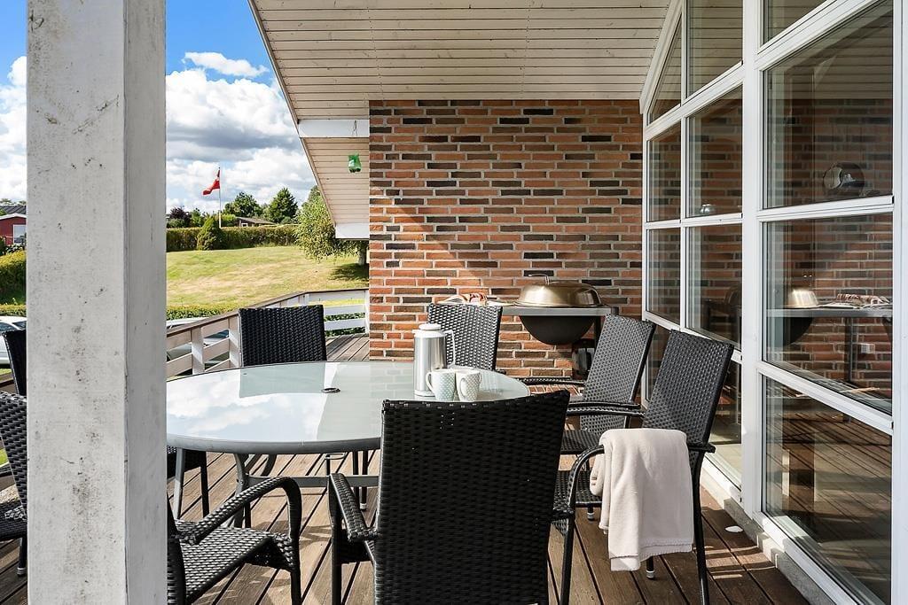 From the living room, you step directly onto the spacious terrace, which sits high in the landscape and offers a wonderful sense of space and open views. You’ll find a sunny spot here most of the day – ideal for enjoying your morning coffee, reading a good book, or sharing a meal under the open sky. The terrace is furnished with comfortable garden furniture and a barbecue, so you can create that holiday atmosphere from day one. The surrounding plot is generously sized, with plenty of room for children to play while the adults relax and take in the view. Birdsong and the rustling of leaves in the treetops easily become your daily background music – and from here, you can also enjoy the unique light that the sea casts across the landscape around Hejlsminde.