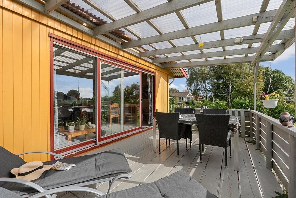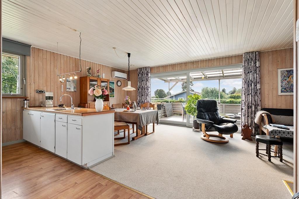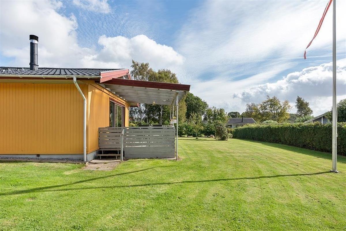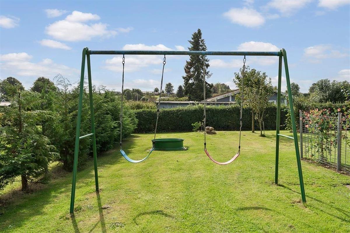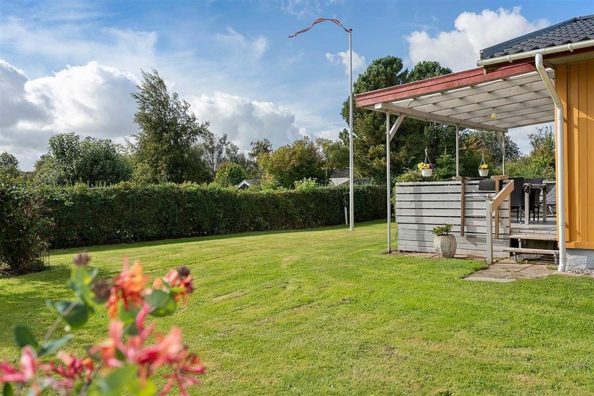 Outside, a beautiful garden awaits, where children can have fun on the swing or play freely on the lawn, while the adults enjoy the peace and the sound of birdsong. The covered terrace is a natural gathering spot for morning coffee or long, bright summer evenings, where the grill can be lit, and the cozy atmosphere can unfold. The house also features a carport, so your car is sheltered while you can simply let your shoulders relax and enjoy the tranquil surroundings. The garden offers both sunny spots and small sheltered corners where you can retreat with a book or simply sit and listen to the sounds of nature.
