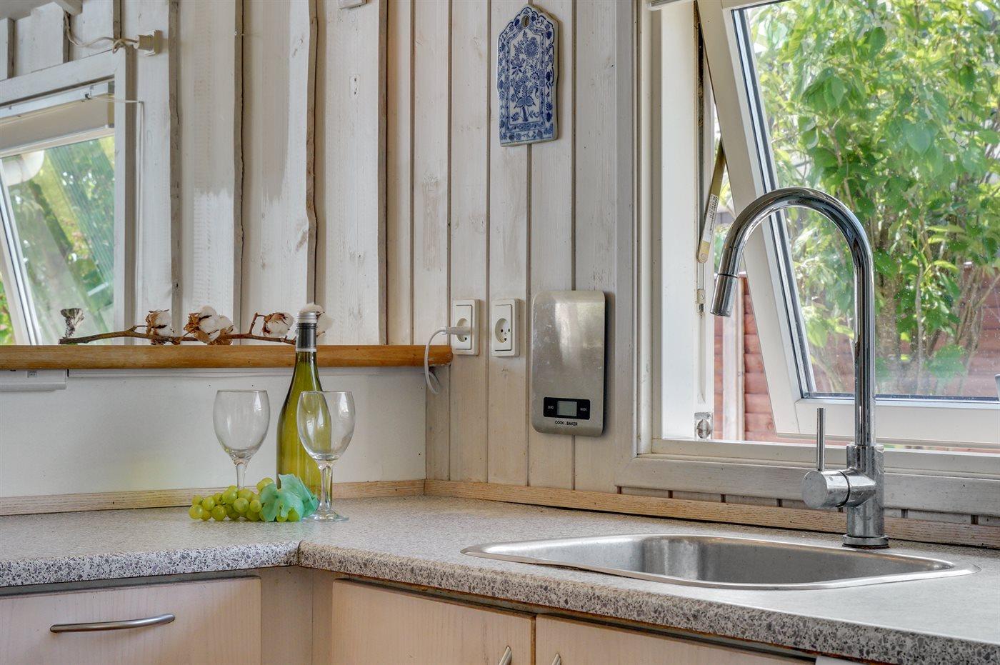 De keuken is uitgerust met koelkast Er zijn 4 keramische kookplaten, heteluchtoven, magnetron en vaatwasser.