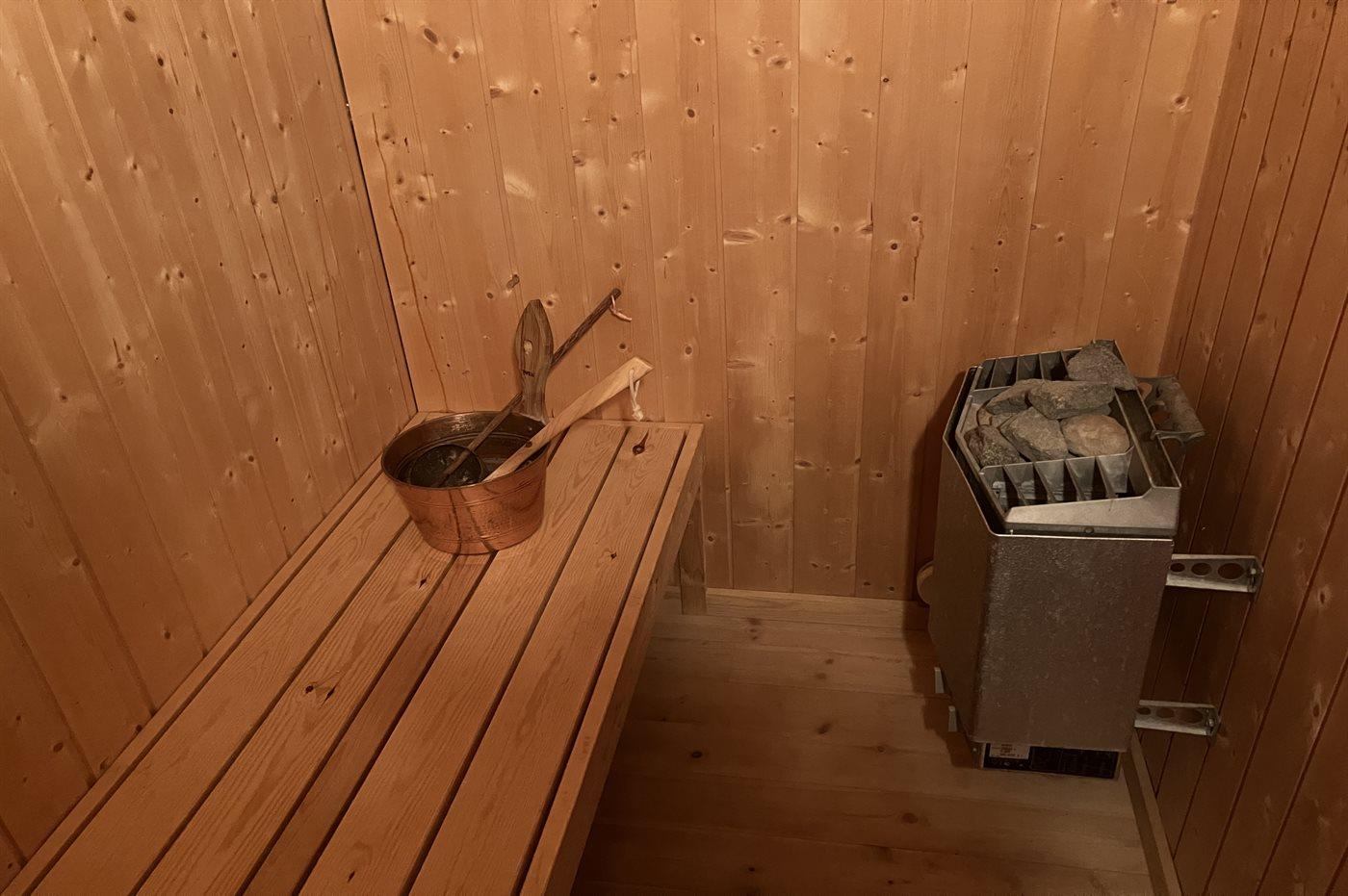 Er is 1 badkamer met douchehok en 1 toilet. De sauna biedt de gelegenheid tot ontspanning.