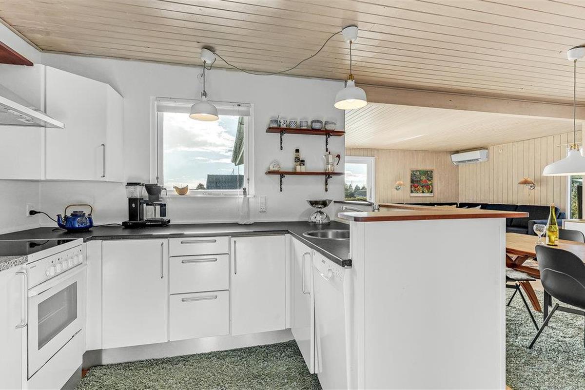 Dit vakantiehuis met carport ligt aan het Hejsager strand bij het water.