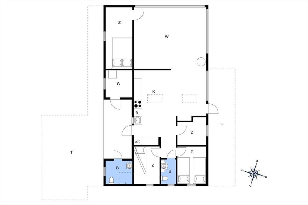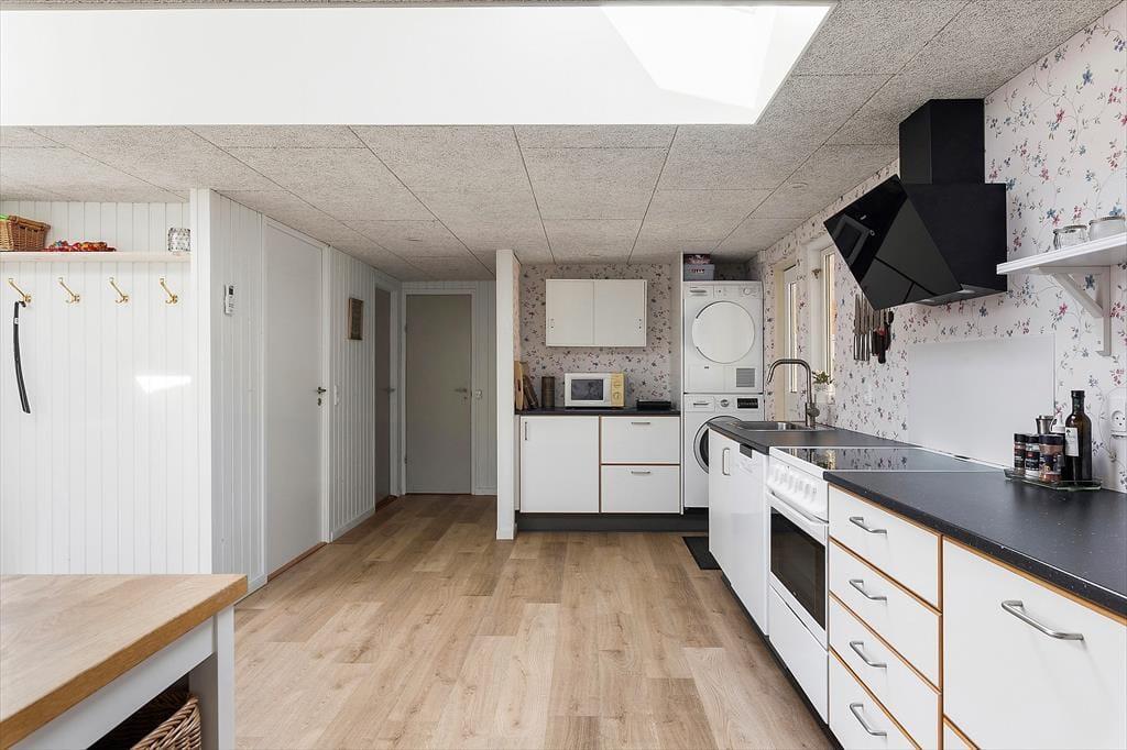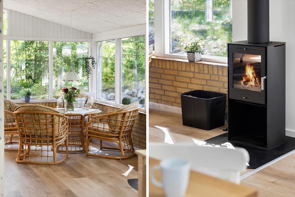 Der Wohnbereich des Ferienhauses ist mit großen Fenstern ausgestattet, so dass Sie auch dann, wenn Sie sich auf dem Sofa oder in der Küche entspannen, die Nähe zum grünen, üppigen Naturgebiet genießen können. Der Wohnbereich besteht aus einer stimmungsvollen Wohnküche mit Holzofen, von der aus es eine direkte Verbindung zu einem Wohnzimmer mit einer Decke zum Kippen und Lichteinfall von Osten und Süden gibt. Die drei Schlafzimmer sind gut im Haus verteilt, und es gibt auch eine Gästetoilette im Haus, und von einer überdachten Terrasse aus haben Sie Zugang zu einem Duschraum und einem Hauswirtschaftsraum.