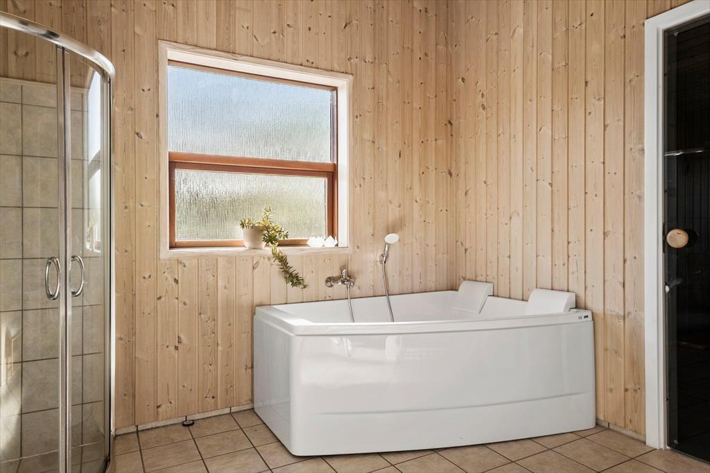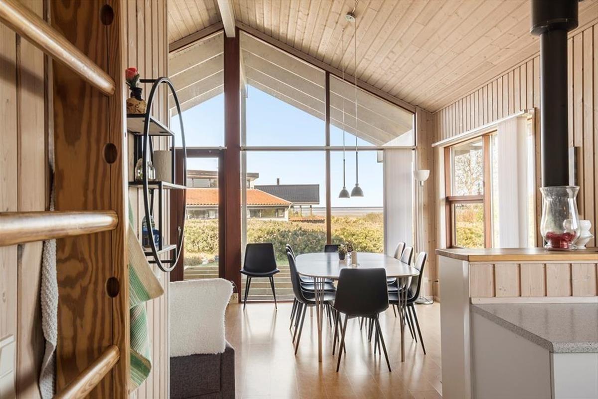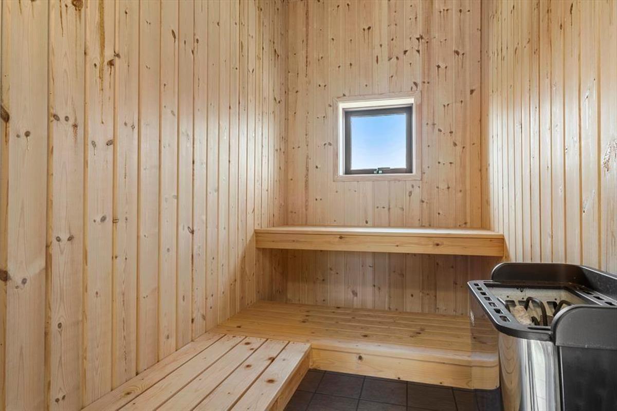 Die Einrichtung ist geschmackvoll mit komfortablen Möbeln und einer offenen Küche, die zu geselligem Beisammensein einlädt. Die großen Fenster sorgen dafür, dass das Licht hereinströmt, und du kannst den atemberaubenden Blick auf das Kattegat sowohl vom Wohnzimmer als auch vom Essbereich genießen. Wenn der Abend hereinbricht, könnt ihr den Kaminofen anzünden und eine entspannende Zeit mit einem guten Buch oder einem gemütlichen Film verbringen. Das Ferienhaus verfügt auch über eine schöne Sauna, in der ihr euch nach einem Tag an der frischen Meeresluft und Outdoor-Aktivitäten aufwärmen könnt.