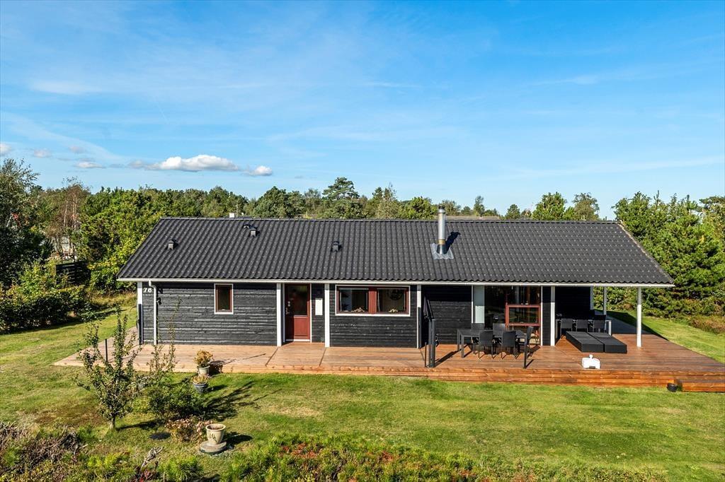 Draußen erwartet dich eine große Terrasse, auf der du in bequemen Gartenmöbeln entspannen und den Blick über das Meer schweifen lassen kannst. Die Terrasse ist der perfekte Ort, um die Mahlzeiten des Tages zu genießen – vielleicht zubereitet auf dem Grill, während die Kinder auf dem Rasen spielen. Die kinderfreundlichen Einrichtungen machen es der ganzen Familie leicht, einen wunderbaren Urlaub zu verbringen. Auf dem großen Naturgrundstück können die Kinder frei herumlaufen und die Umgebung erkunden, während du die Ruhe und die frische Luft genießt. Hier könnt ihr auch gemütliche Gartenspiele spielen oder euch einfach zurücklehnen und den Vögeln lauschen, die zwitschern, und dem beruhigenden Rauschen des Meeres. Das Leben im Freien ist eine natürliche Verlängerung des Aufenthalts drinnen, und du kannst problemlos den Vormittagskaffee mit auf die Terrasse nehmen oder eine ruhige Zeit mit Blick auf die Sonne genießen, die im Kattegat glitzert.