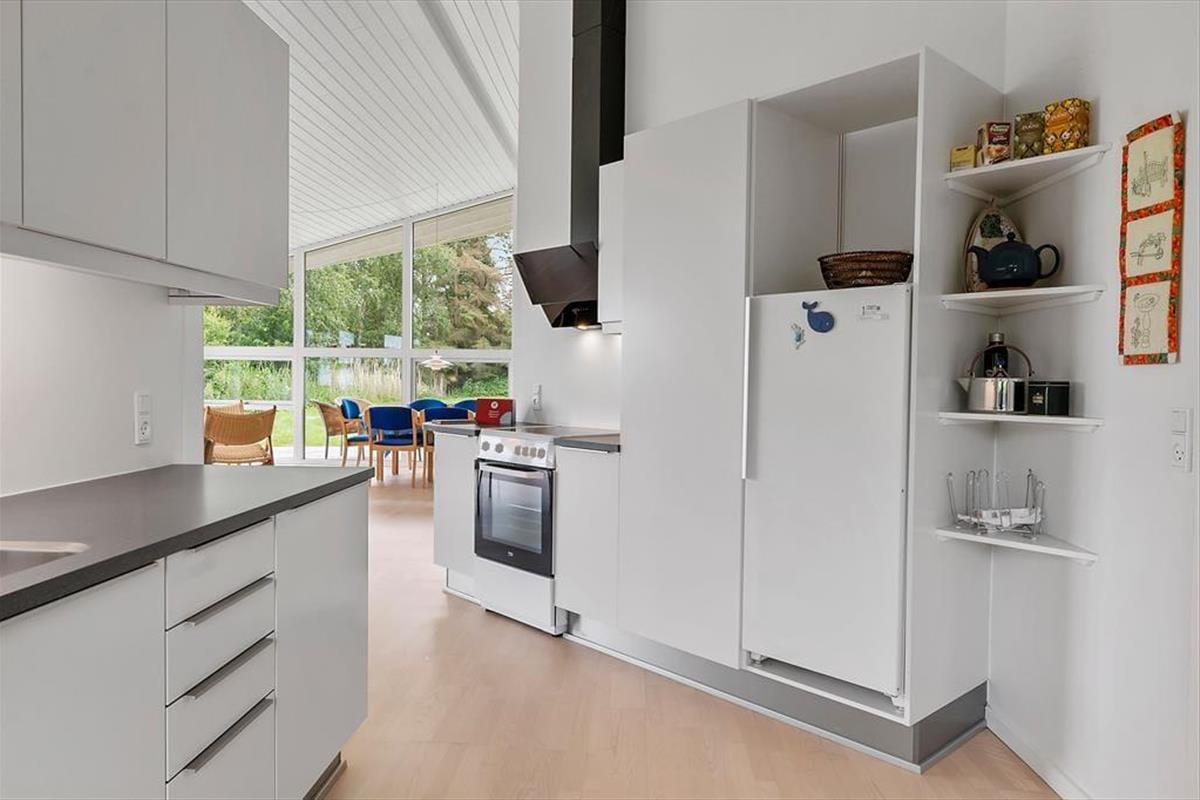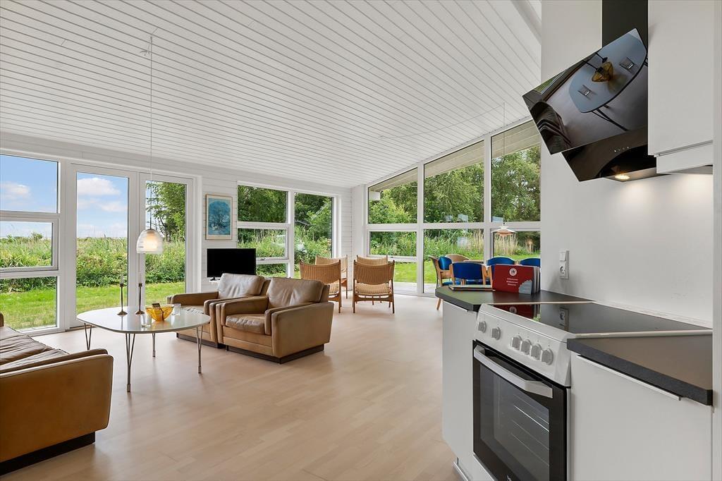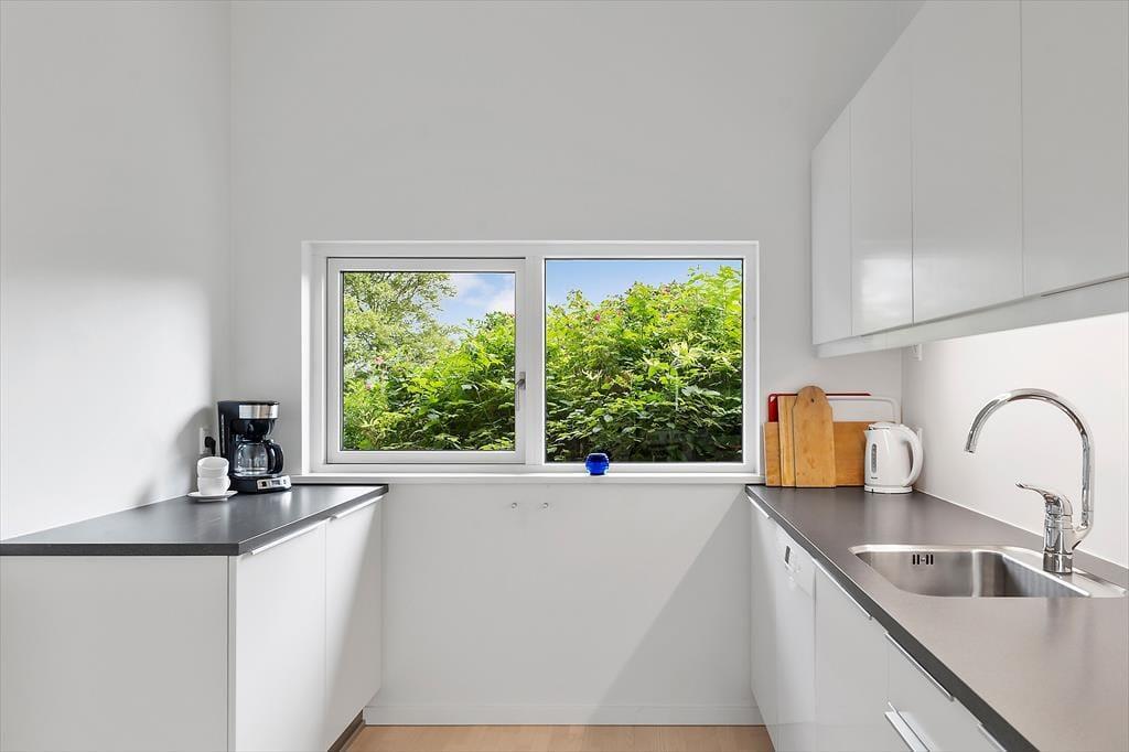 Das Ferienhaus wurde 2015 mit großen Glaspartien im Wohnzimmer erbaut, damit du die Nähe zur Natur spüren und das Sonnenlicht genießen kannst – auch an Tagen, an denen du lieber drinnen bleibst. Wenn du deinen Blick vom Kattegat lösen kannst, gibt es im Wohnzimmer einen Flachbildfernseher und einen Kaminofen, der für Wärme und Gemütlichkeit sorgt, wenn das Wetter dazu einlädt. Die gut ausgestattete Küche ist offen mit dem Wohnraum verbunden. Auch das Badezimmer und die beiden Schlafzimmer sind hell und luftig eingerichtet, sodass alle Räume eine sommerliche Ferienatmosphäre ausstrahlen.